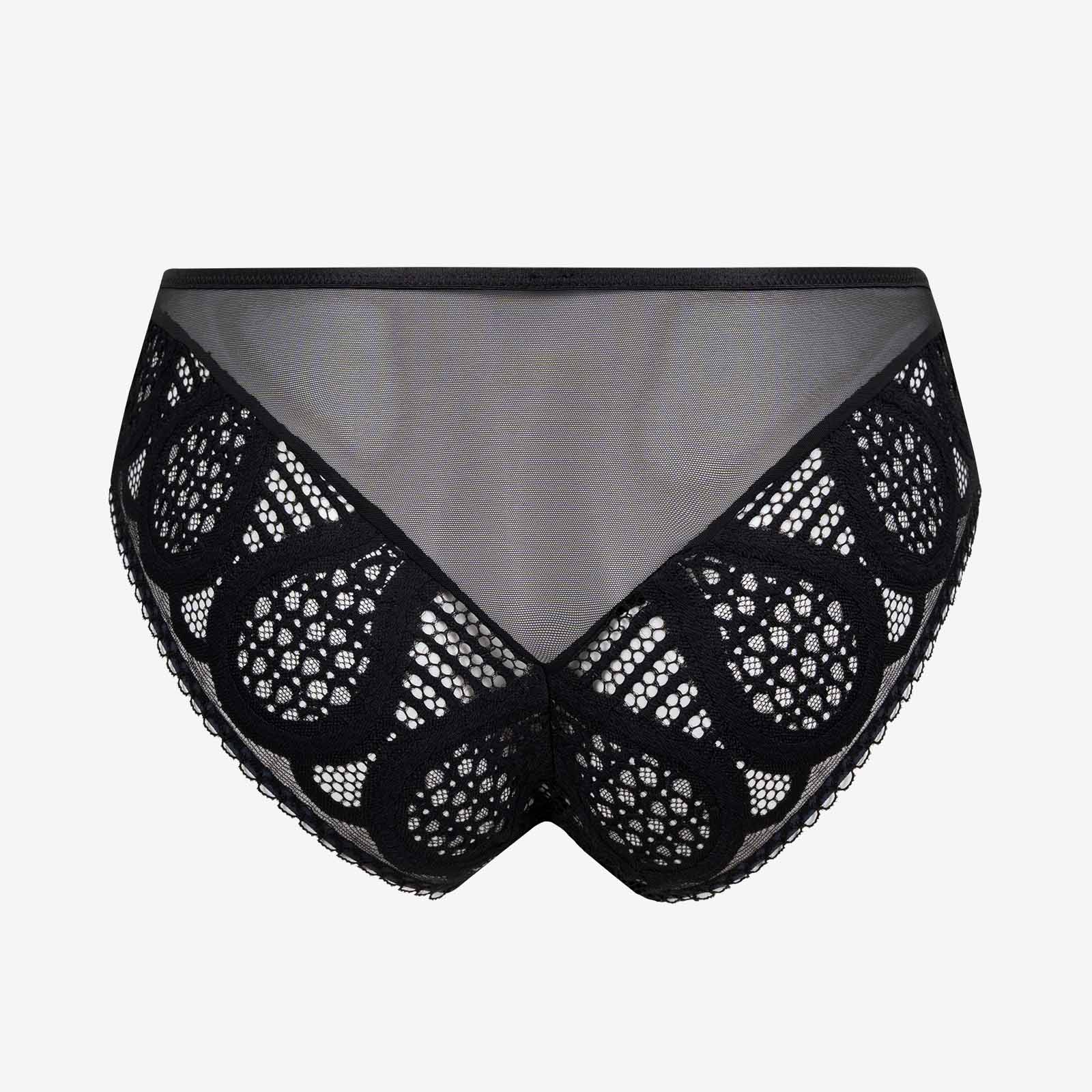Le graphisme affirmé de la dentelle crée un effet visuel saisissant. Chaque modèle dévoile une dentelle noire au design travaillé, mêlant courbes sinueuses, formes ogivales et fonds alvéolés pour un rendu hypnotique et envoûtant. Le décolleté droit, aérien et léger, ajoute une touche de finesse et souligne l’élégance contemporaine de la ligne. Pièce emblématique de la collection, le body se distingue par sa coupe ultra-sexy, qui sublime les courbes et joue avec les transparences, sans jamais tout dévoiler.