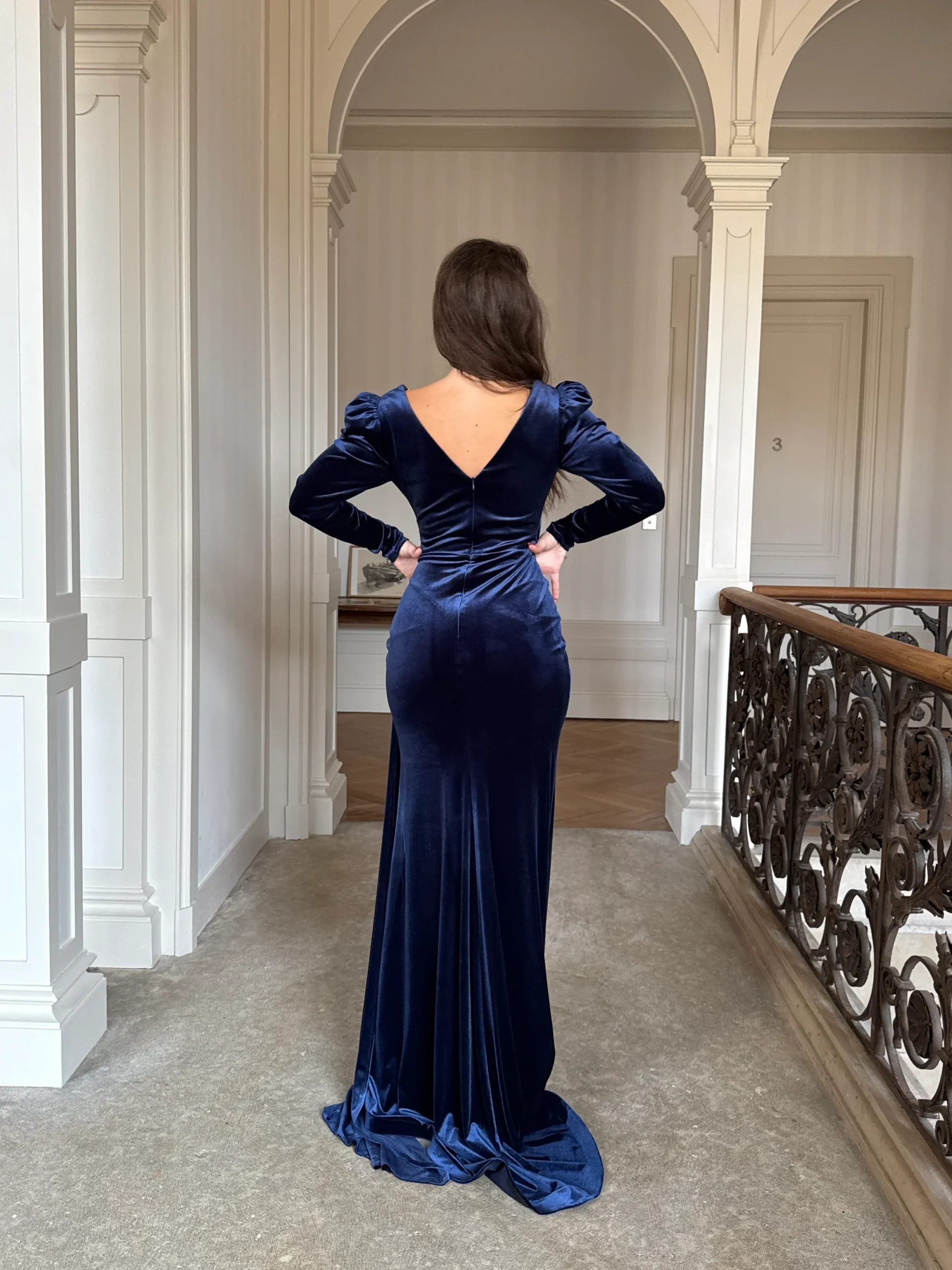 Par ailleurs, le tissu en velours doux confère un aspect luxueux et assure un confort optimal tout au long de la soirée. D’ailleurs, la coupe ajustée de cette robe met en valeur la silhouette avec beaucoup de finesse. En outre, les détails plissés autour de la taille soulignent vos courbes tout en ajoutant une touche sophistiquée. De surcroît, les manches longues et les broderies délicates renforcent son élégance intemporelle.