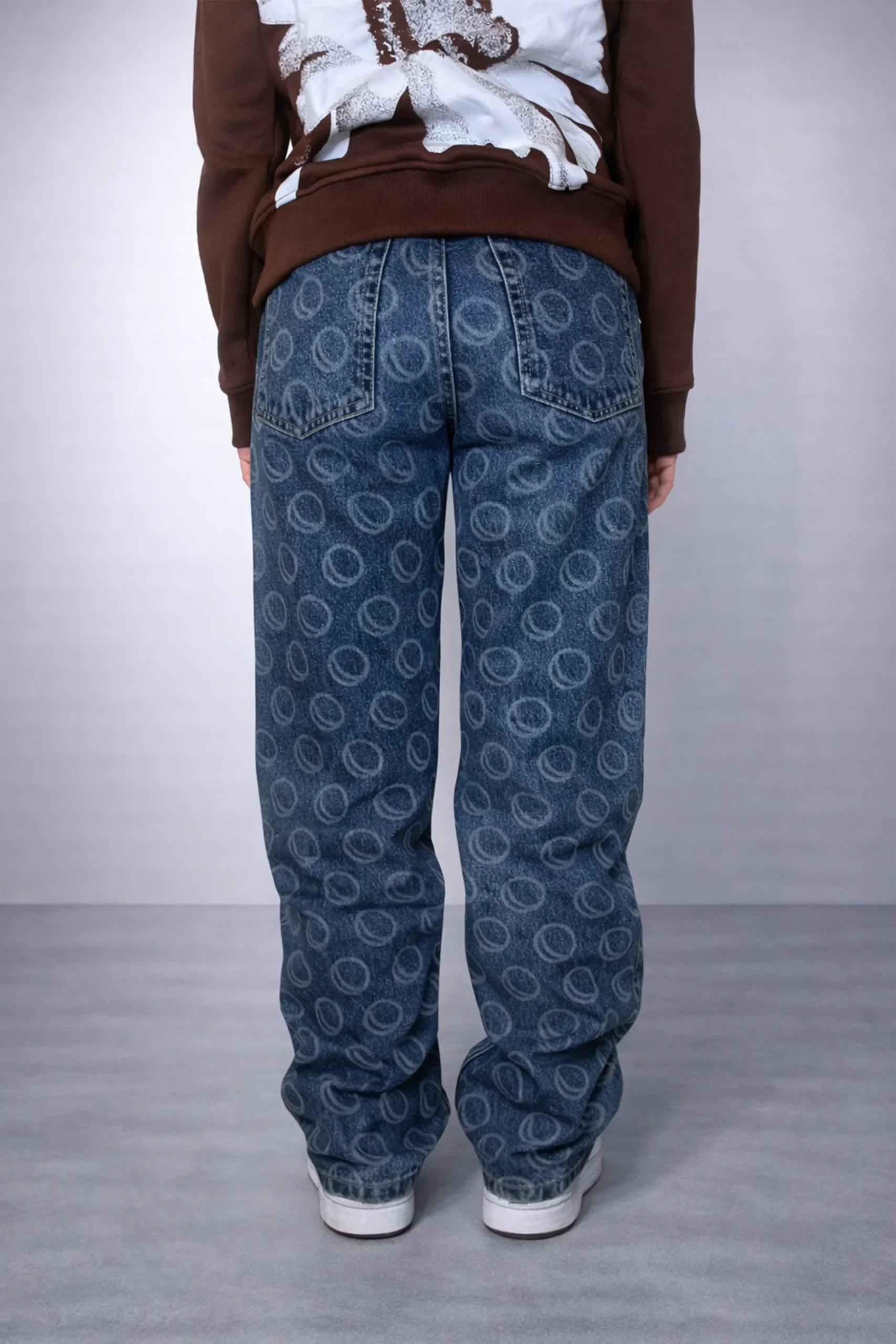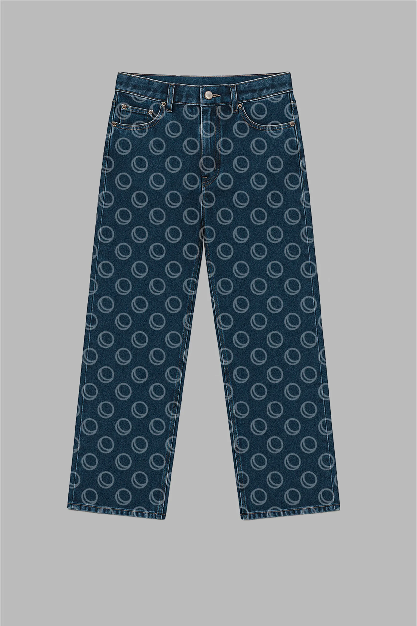 Jean droit en denim épais 100 % coton, marqué par l’imprimé lunaire signature 12LUNES. Une pièce brute et soignée, entre héritage workwear et vision contemporaine du streetwear.