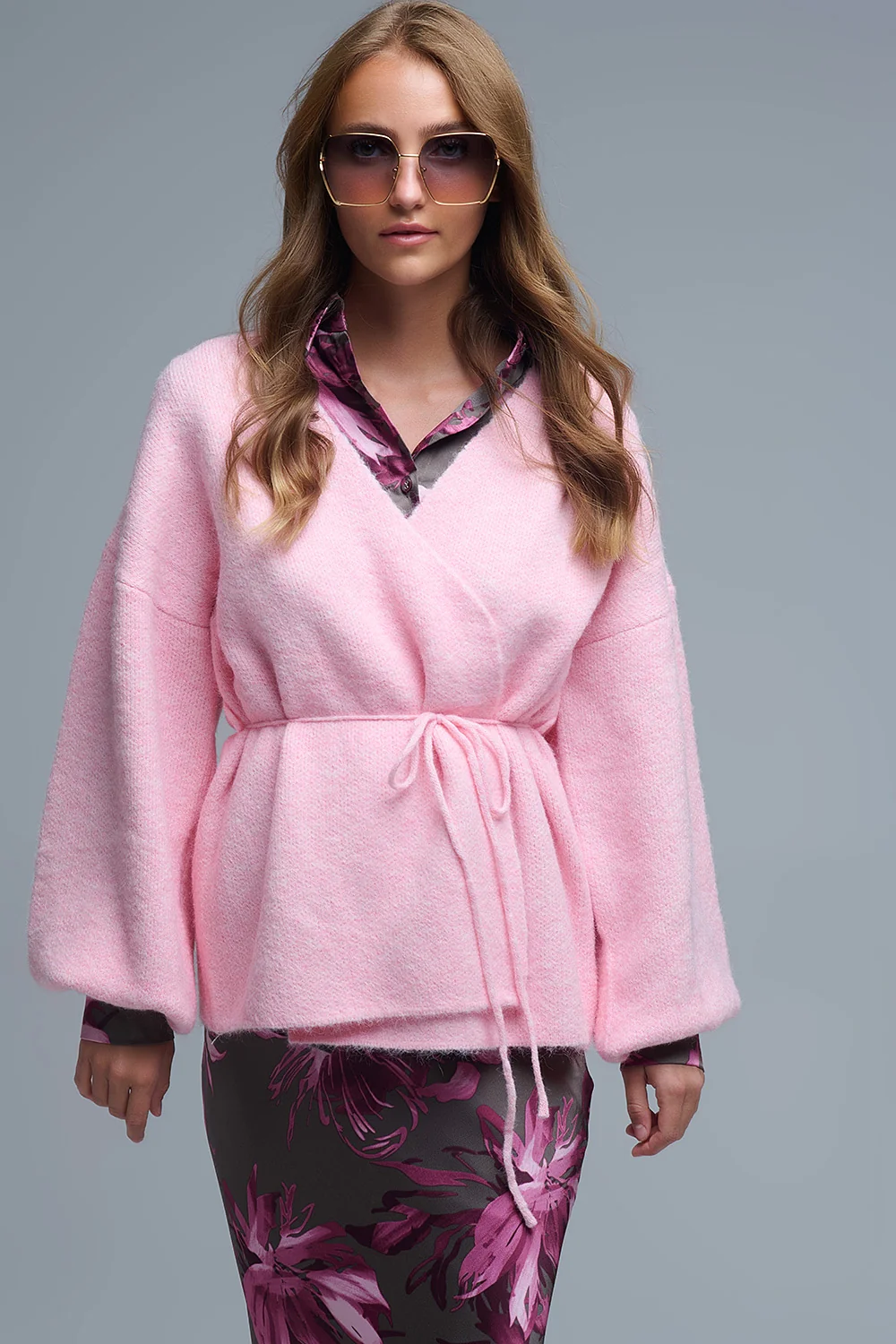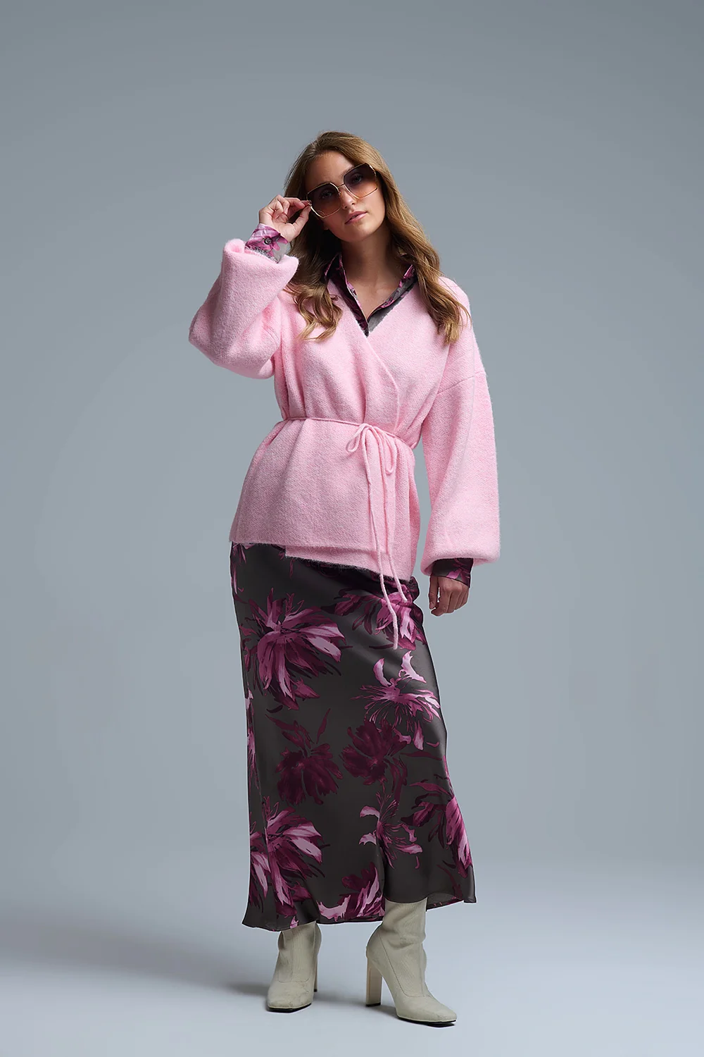 Cardigan court en maille avec manches d’ange et vagues multicouleures en beige