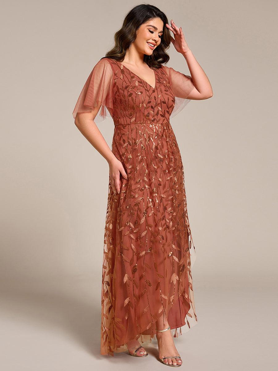 Le décolleté en V plongeant ajoute une touche d’allure, tandis que les détails de paillettes complexes sur toute la robe captent la lumière avec un éclat fascinant. La fente haute le long de la jupe ajoute une touche dramatique, vous permettant de mettre en valeur vos jambes lorsque vous vous déplacez gracieusement à travers la […]