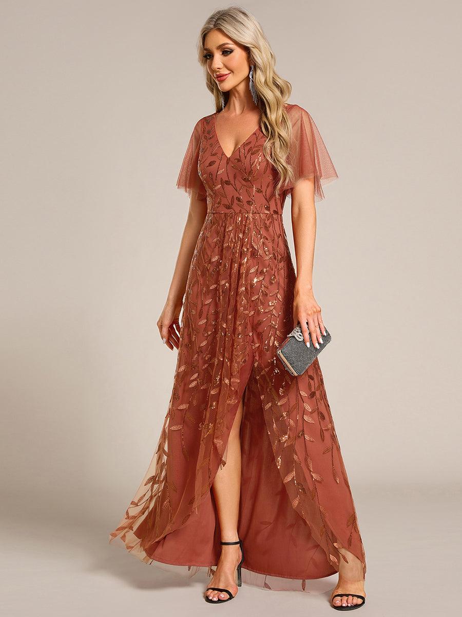 ever ALIX|Robes de soirée pailletées à col en V et fente haute