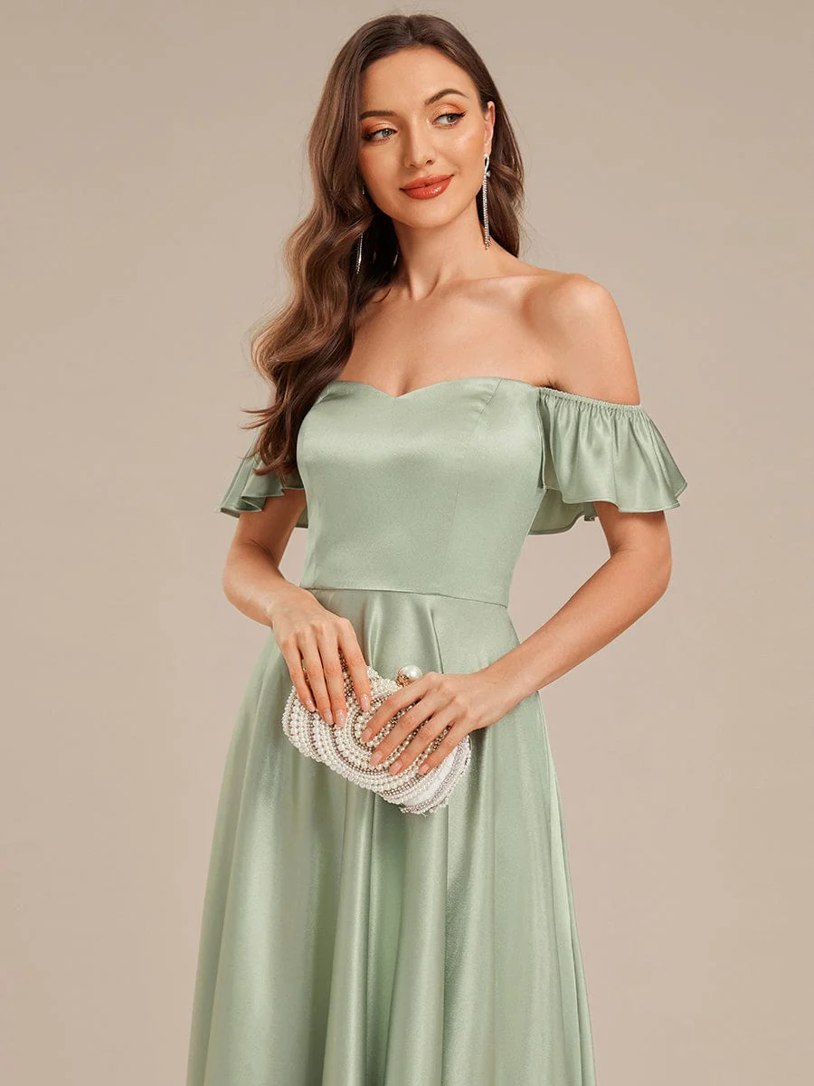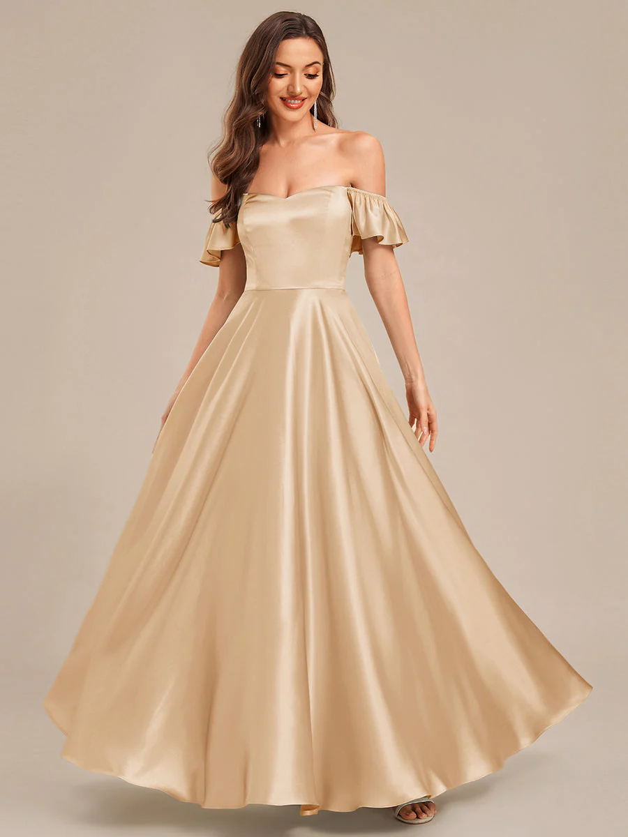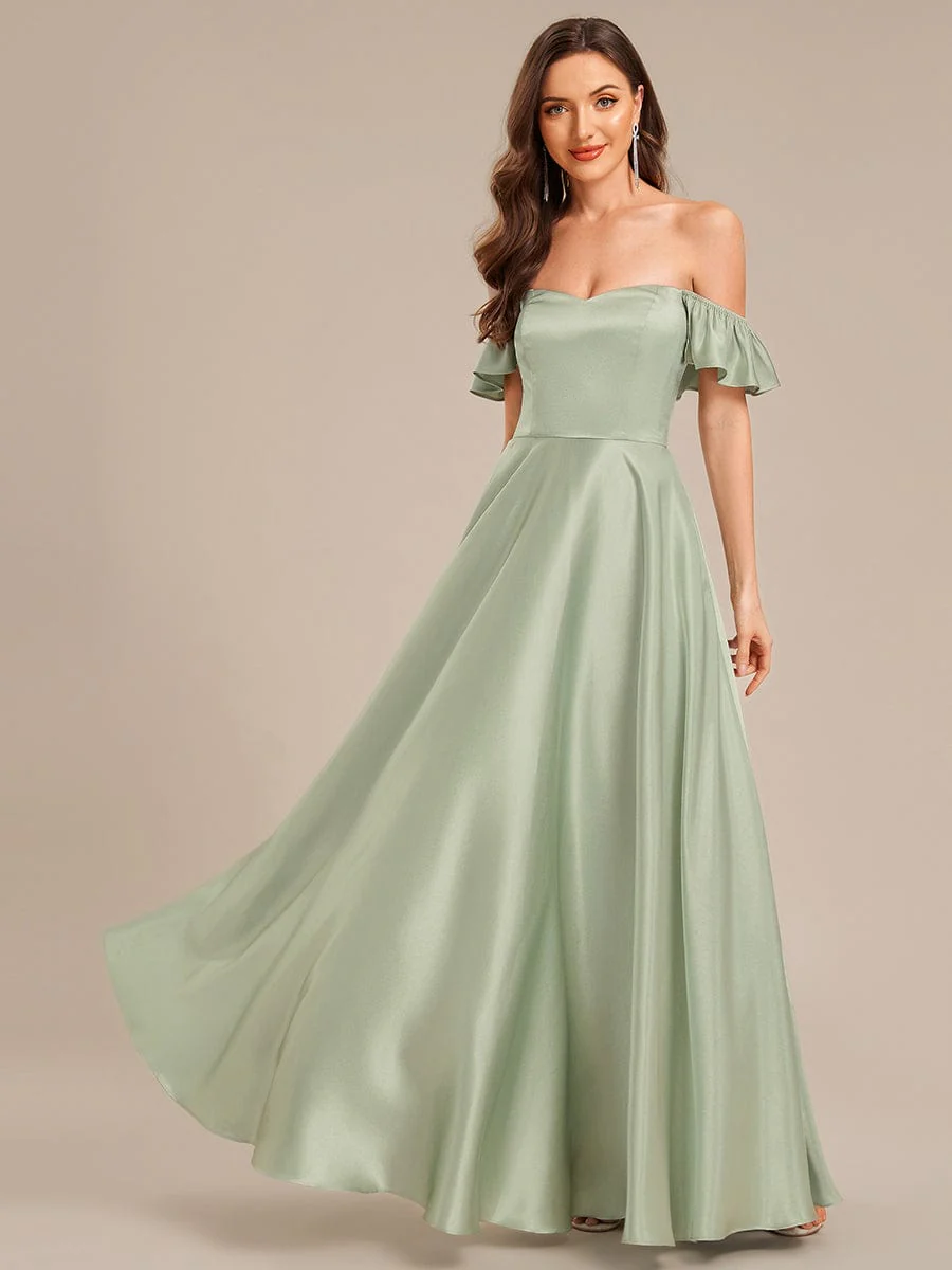 ever ALVARA|Robe de soirée en satin à épaules dénudées et manches à volants