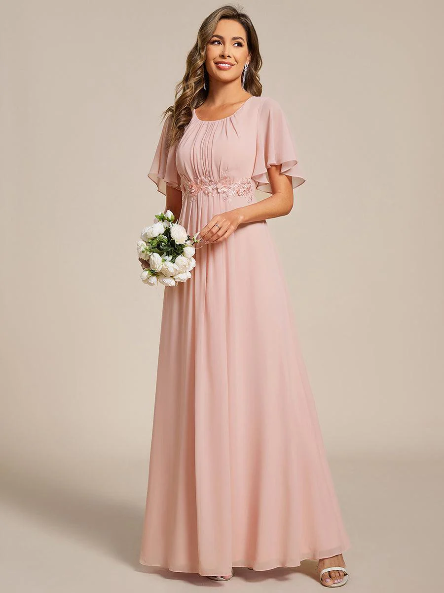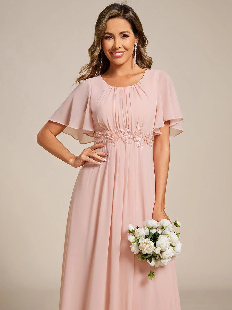 ever ASPYN|Robe de soirée trapèze à manches courtes et appliques plissées