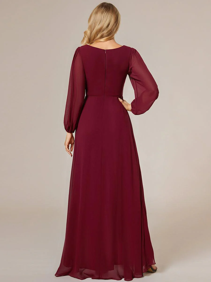 ever GRIFFIN|Charmante Robe De Demoiselle D’honneur Plissée à Manches Lanternes En Mousseline De Soie Et Taille Haute