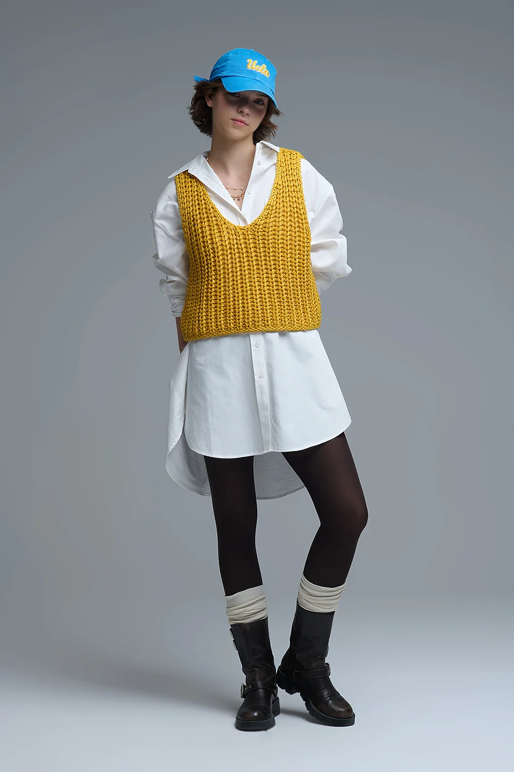 Soyez le premier à laisser votre avis sur “Gilet crocheté jaune avec fils pailletés”
