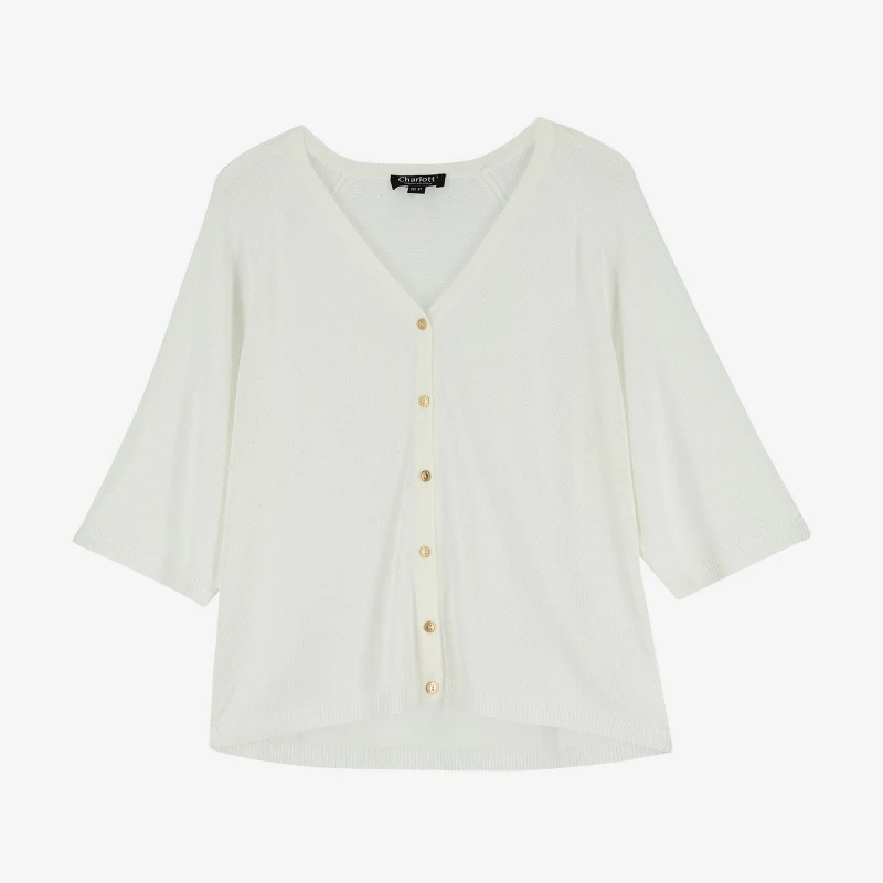 Avec ses manches raglan 3/4 et ses finitions côtelées, il se porte aussi bien sur une robe légère qu’avec un jean et un top.