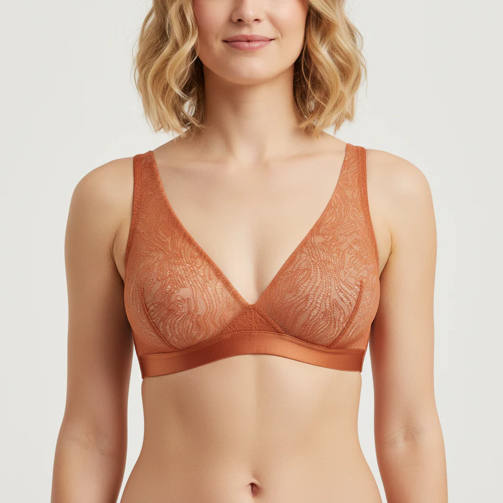 Chaque pièce de la collection « Indiana » est un hymne à la modernité, une symphonie de lignes fluides et de coupes innovantes qui célèbrent la diversité et la beauté du corps féminin. Cette ligne, marie avec audace la sensualité de la dentelle zébrée à la chaleur envoûtante de la couleur terracotta.
