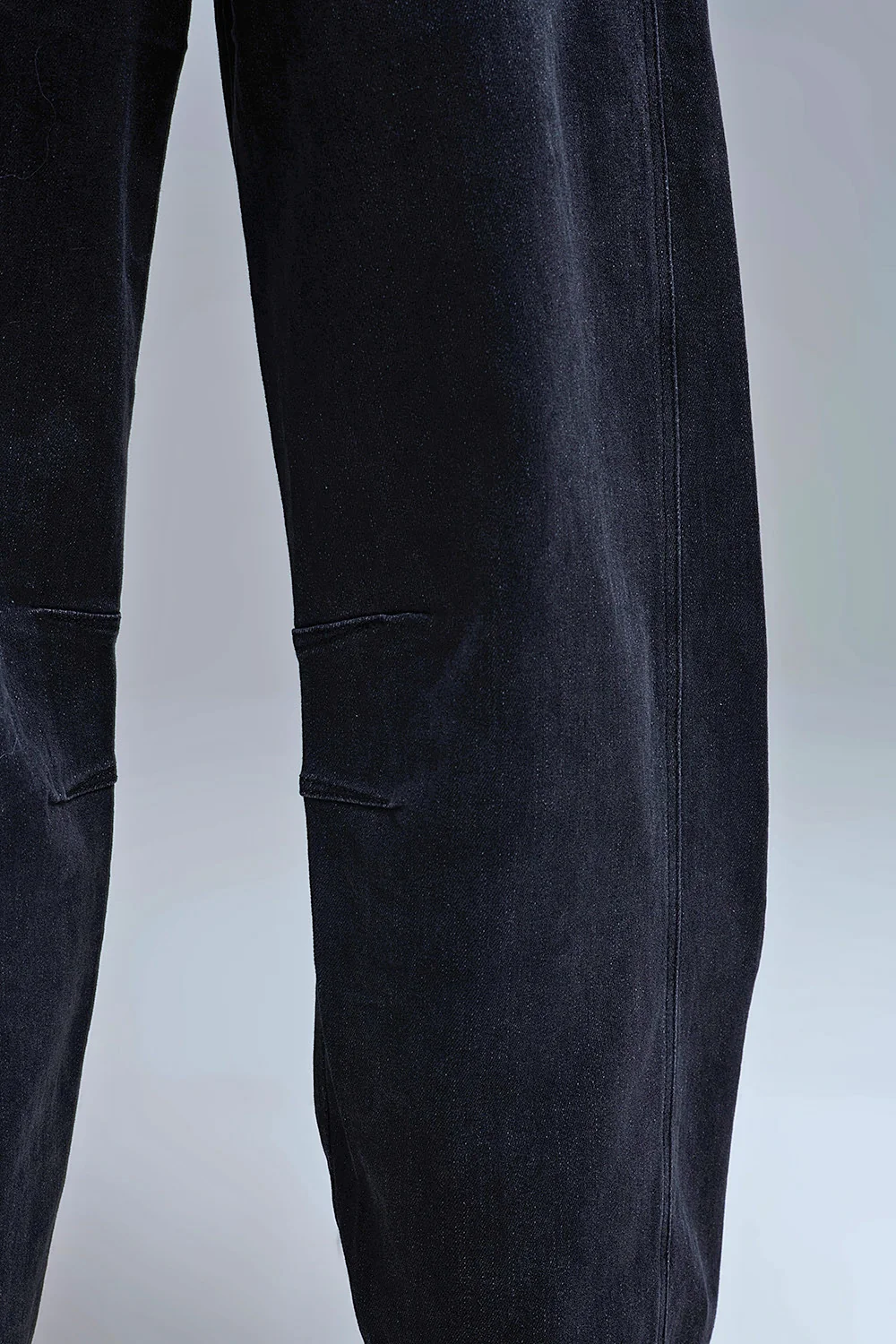 Jean Barrel noir délavé avec coutures apparentes