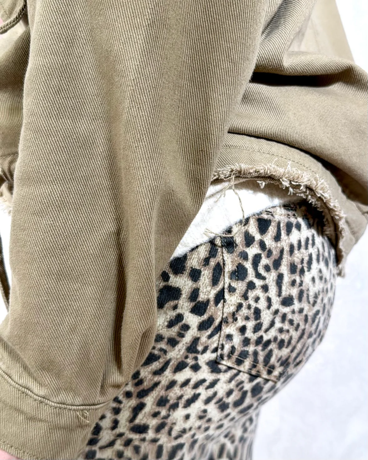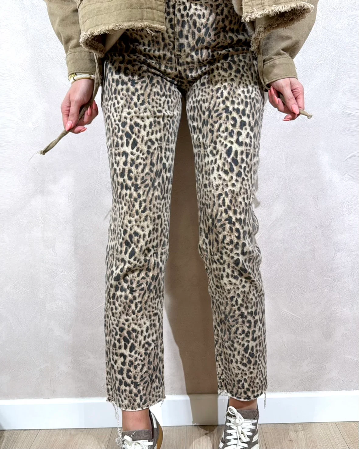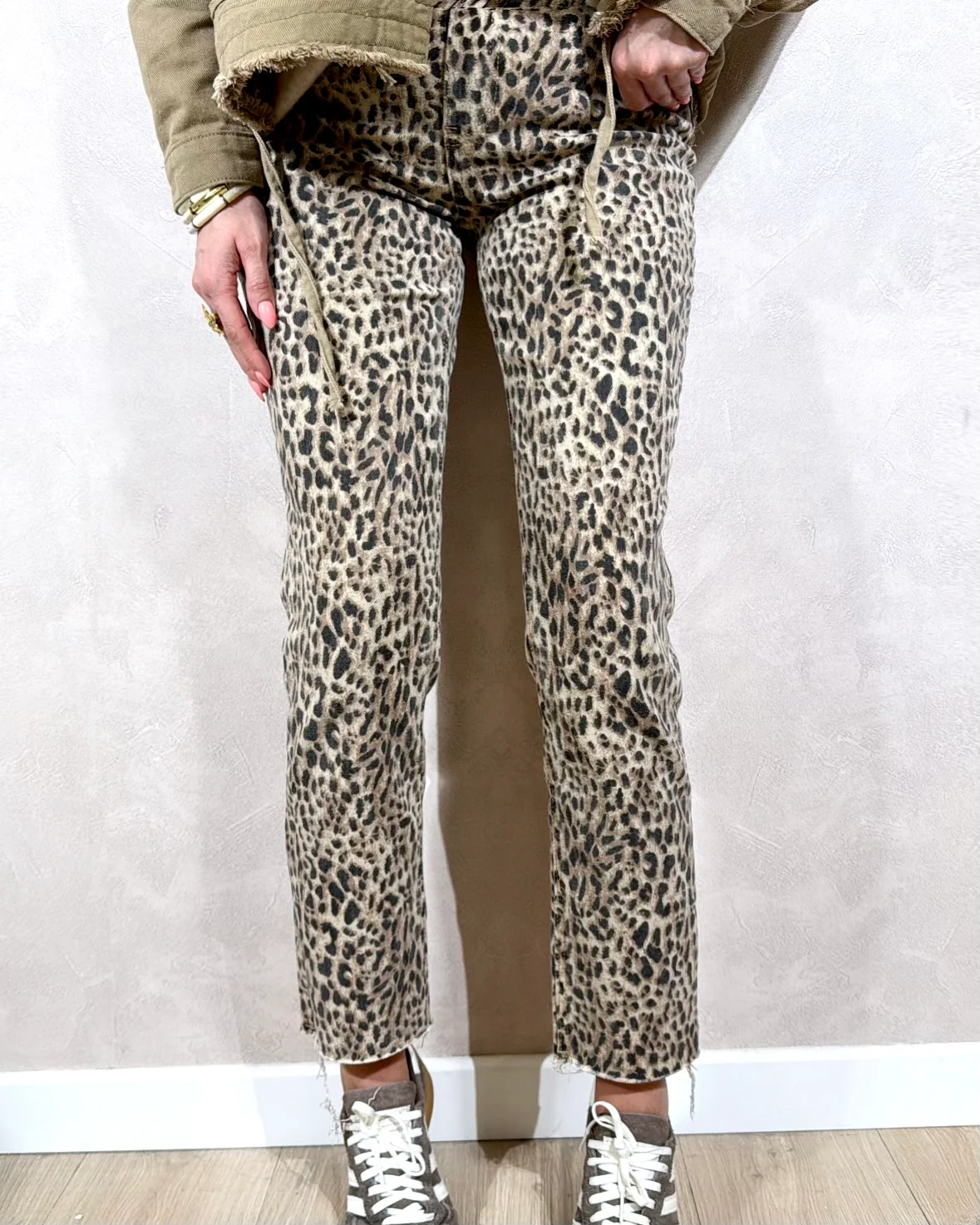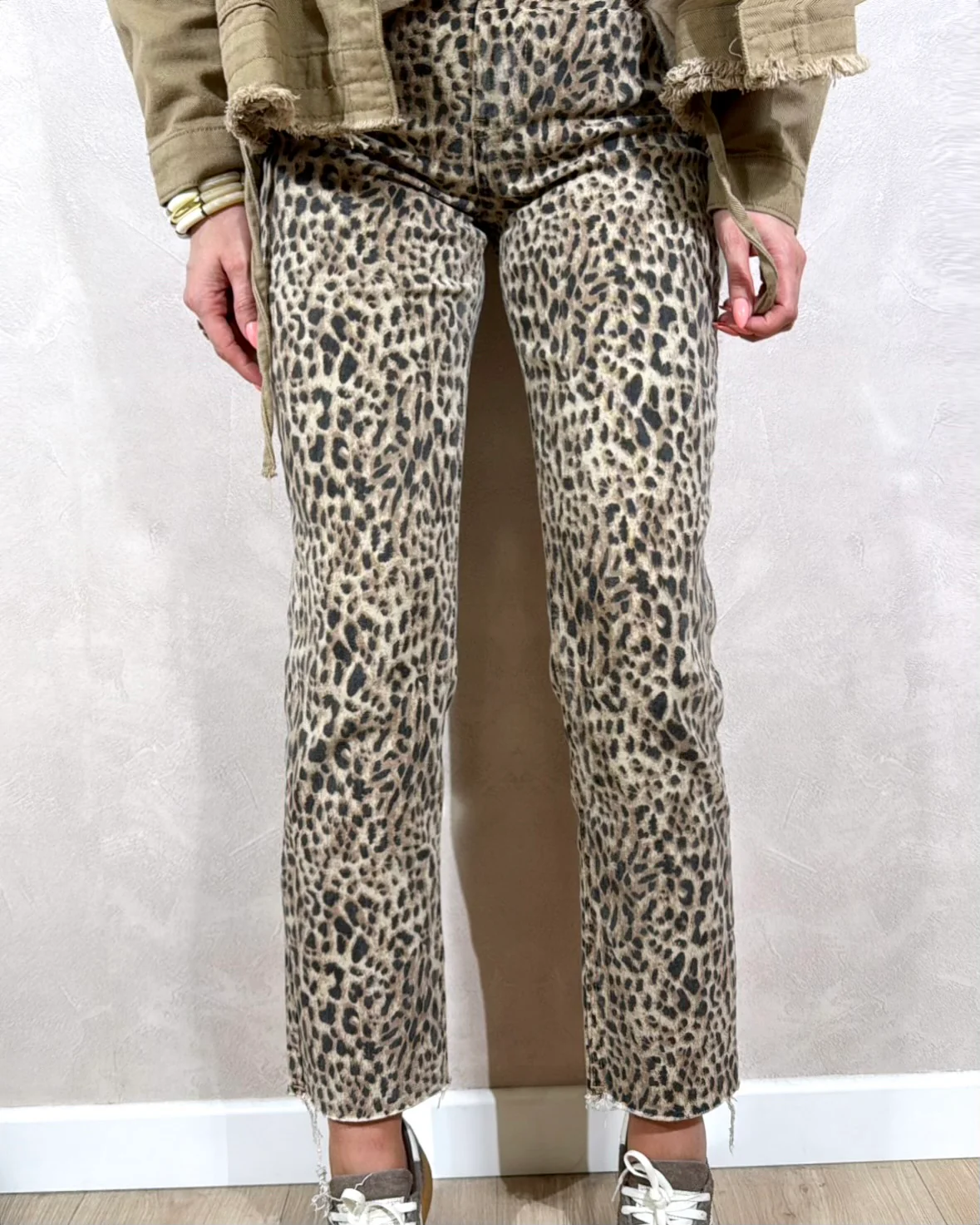 Jean Mom Sharon • Poches à gauche et à droite • Fermeture par zip et boutons sur le devant • Confort absolu, Jean bien stretch • Motif Léopard • Effilé au bout des jambes • Pauline mesure 1M65 et porte une taille S • XS : Longueur 93 cm – Largeur 32 cm• S : […]