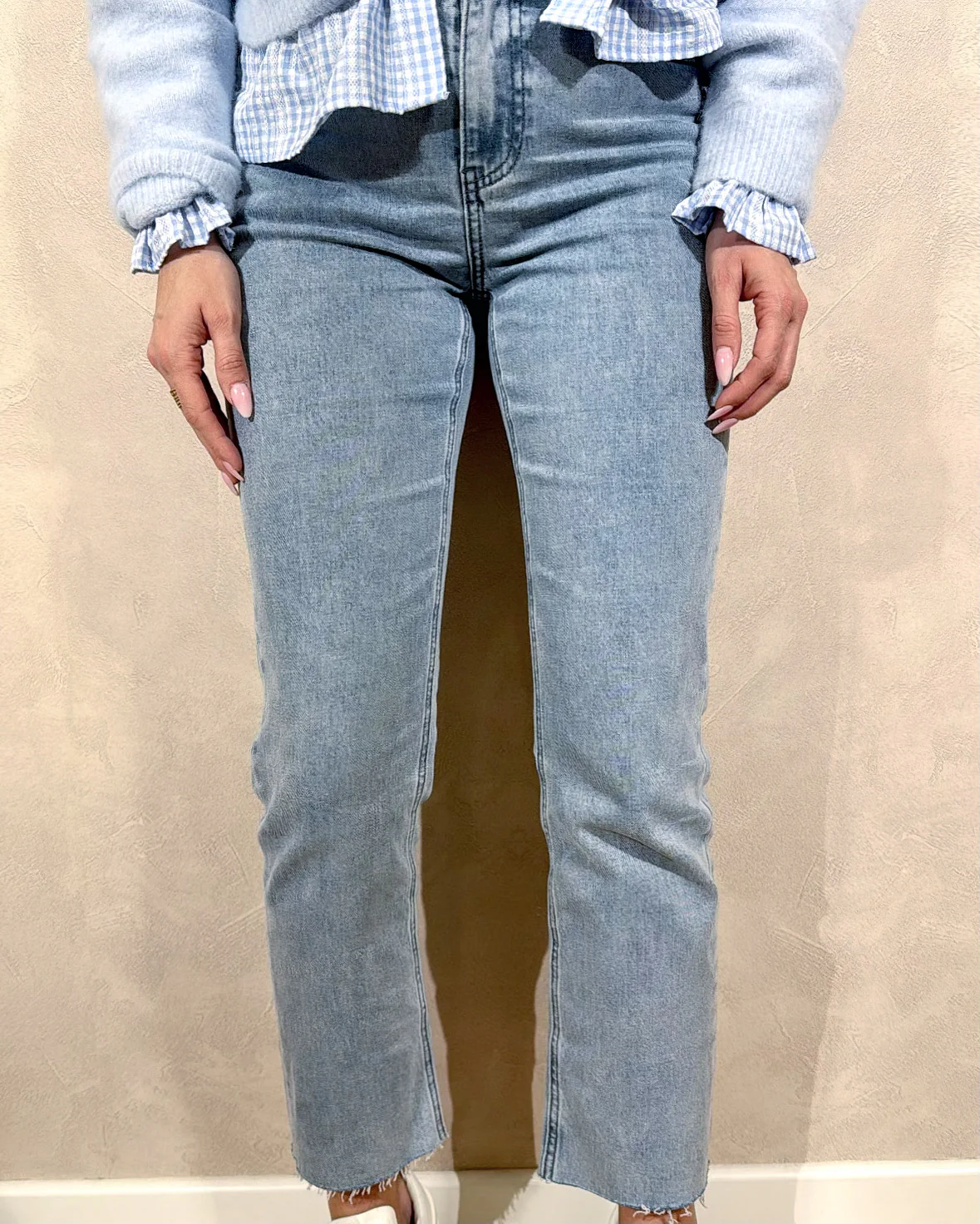Jean Perfect • Poches à gauche et à droite • Fermeture par zip et bouton sur le devant • Le modèle mesure 1M65 et porte une taille S • Composition : 99% coton 1% Elasthanne • Mode d’expédition: La poste, colissimo avec ou sans signature. • Livraison offerte à partir de 69 € d’achat