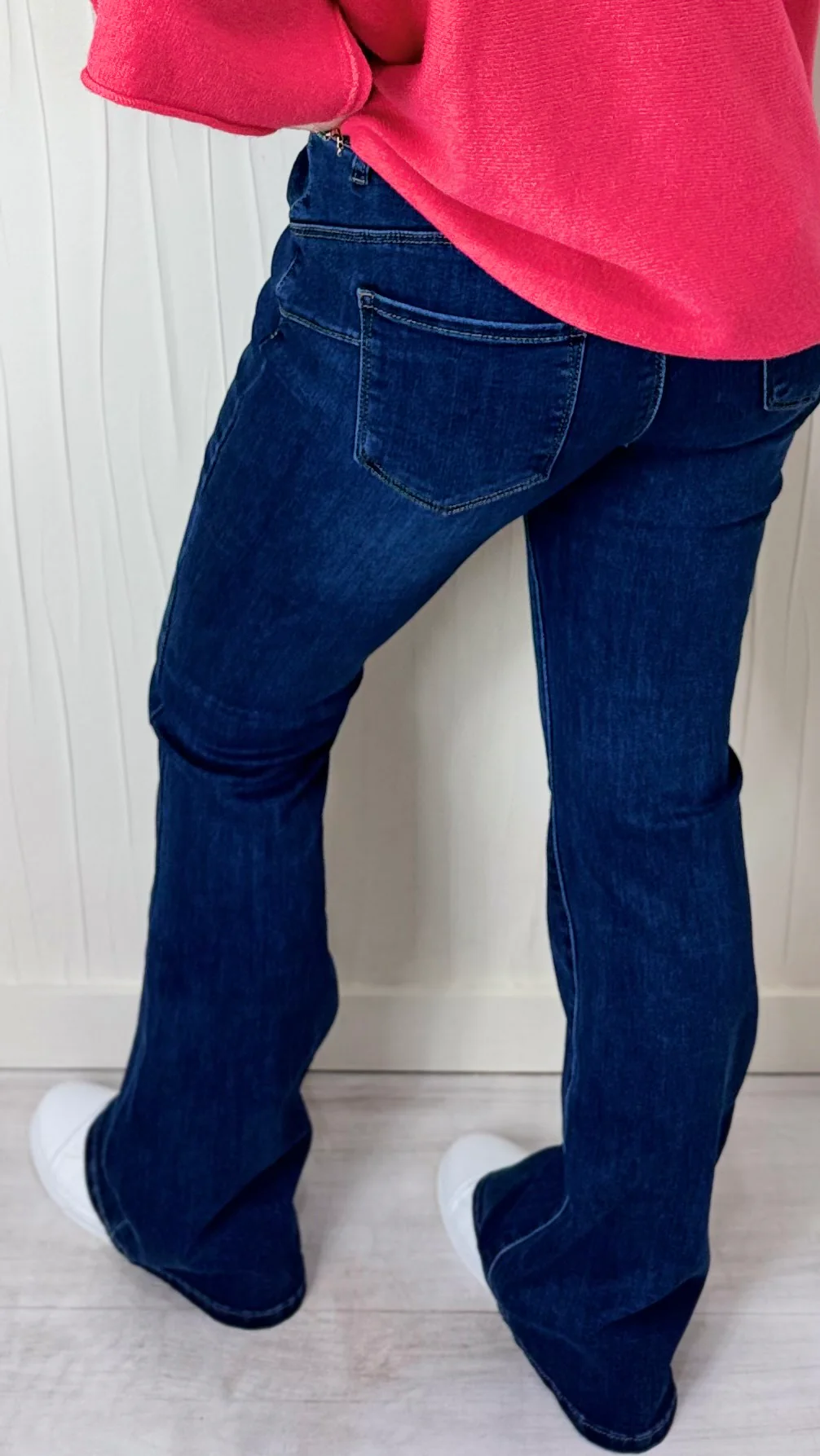 Craquez pour ce jean flare push up bleu foncé, une pièce intemporelle qui allonge la silhouette avec style. Sa coupe évasée et son effet galbant assurent une allure féminine et tendance. Le bleu foncé, profond et chic, s’adapte aussi bien à un look de jour qu’à une tenue plus habillée.