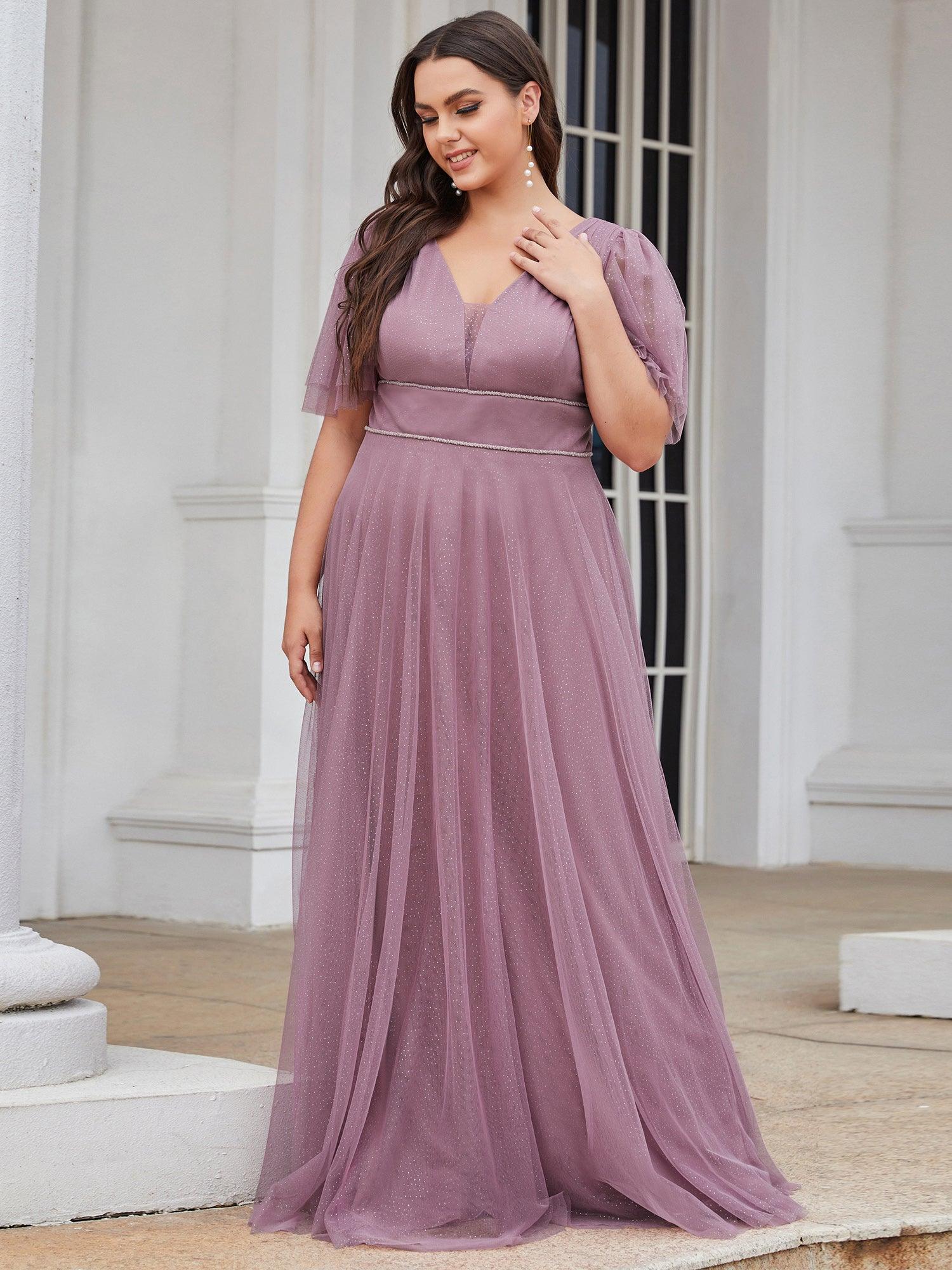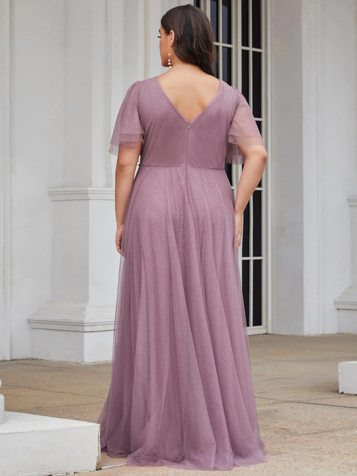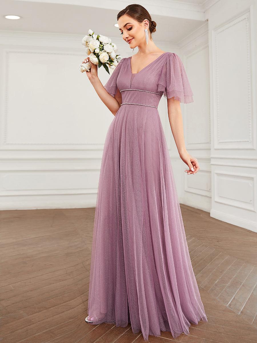 Jolie robe de soirée longue en tulle avec col en V profond(Vente finale)