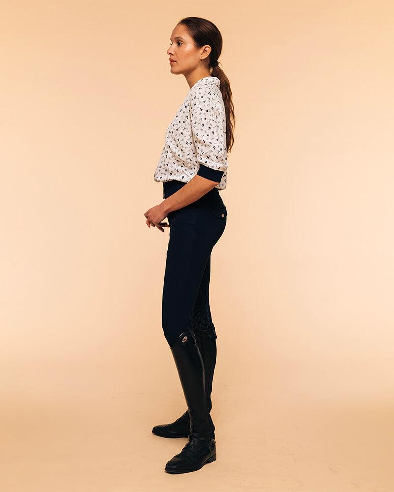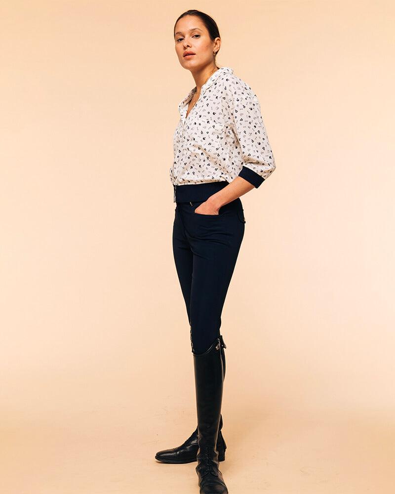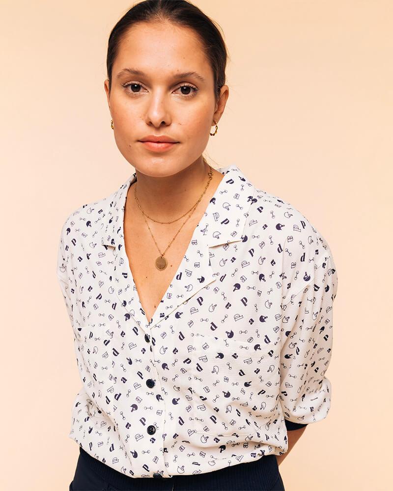 La chemise Jolly est une pièce à l’esprit rétro, légère et confortable, elle se porte au quotidien, aussi bien à cheval que pour la vie de tous les jours.