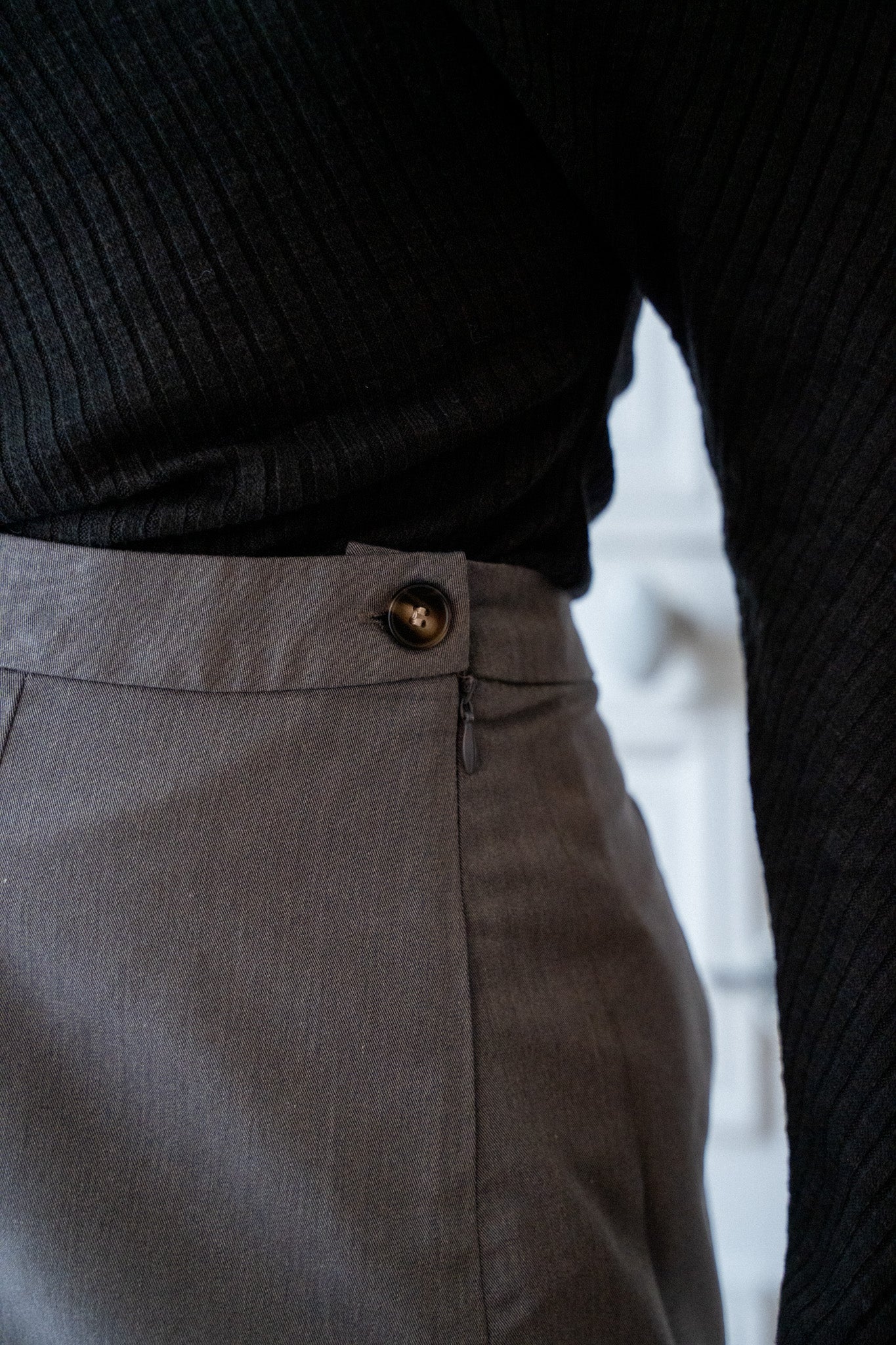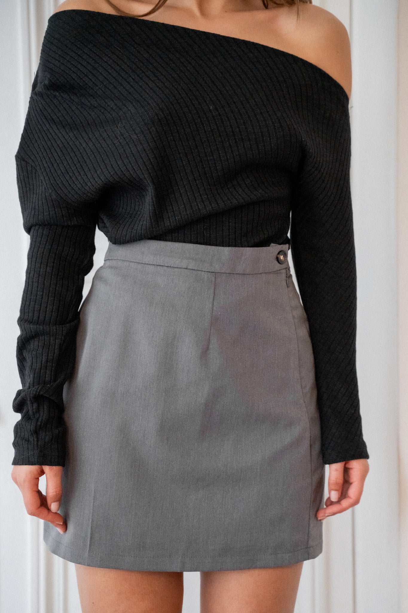 – Jupe d’ensemble – Tissu gris uni – Coupe trapèze– Taille haute cintrée – Bouton sur le côté – Zip latéral Mesures à plat en CM : Tour de taille : S 36 M 37 L 39 Longueur : S 42 M 43 L 44