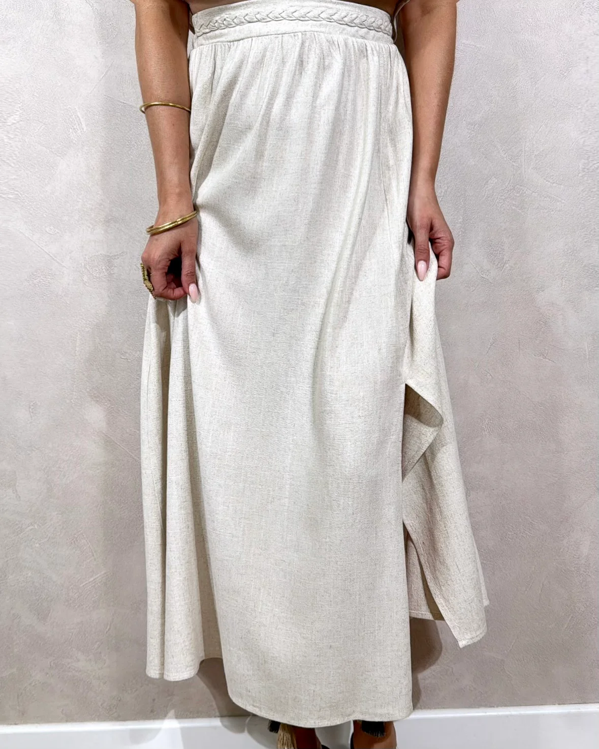 Jupe Calima • Elastique sur l’arrière • Tresse sur le devant • Pauline mesure 1m65 et porte une taille S • Composition : 70% Viscose 30% Lin • Mode d’expédition: La poste, colissimo sans signature . • Frais de port offerts à partir de 69 € d’achat