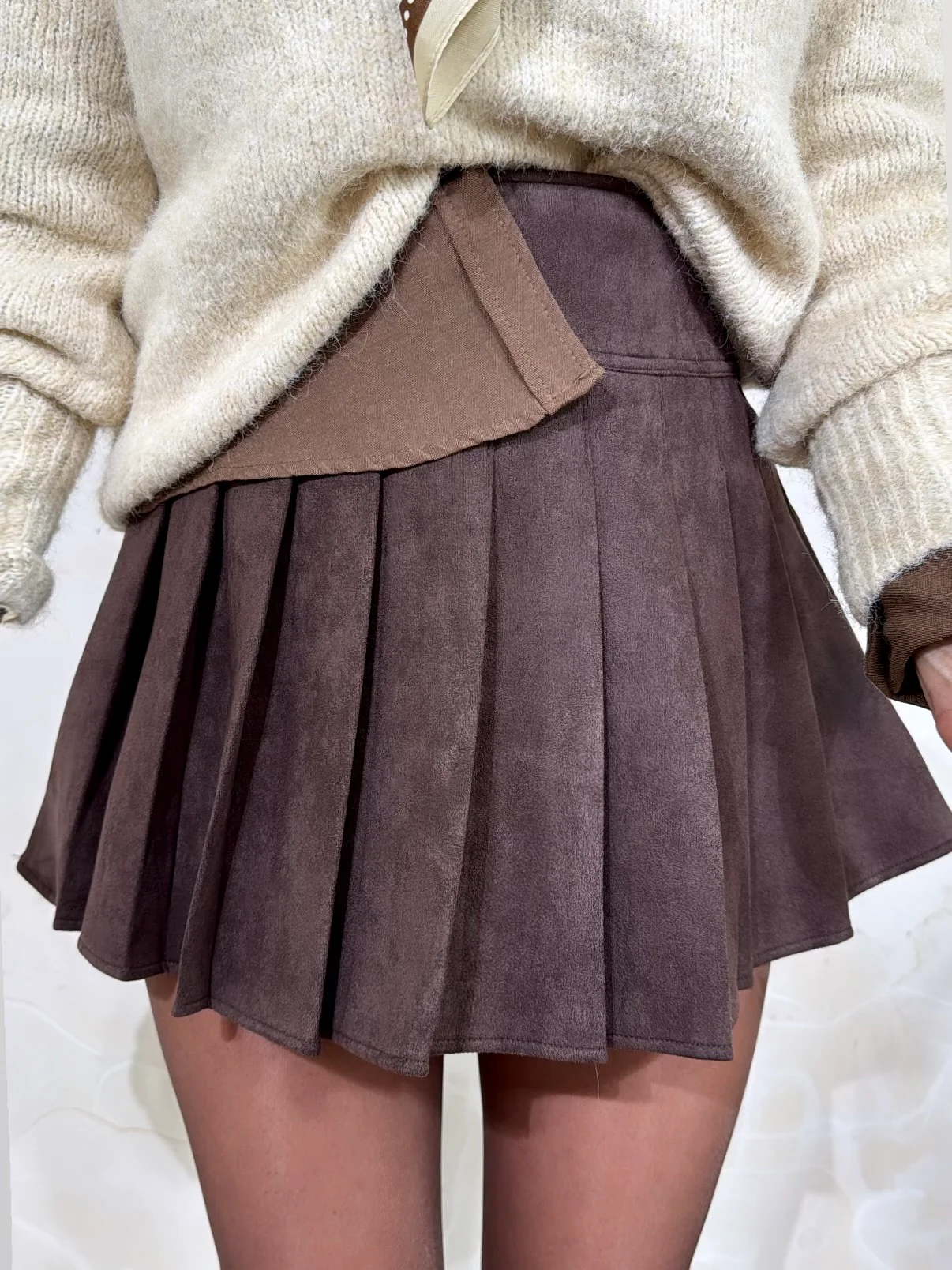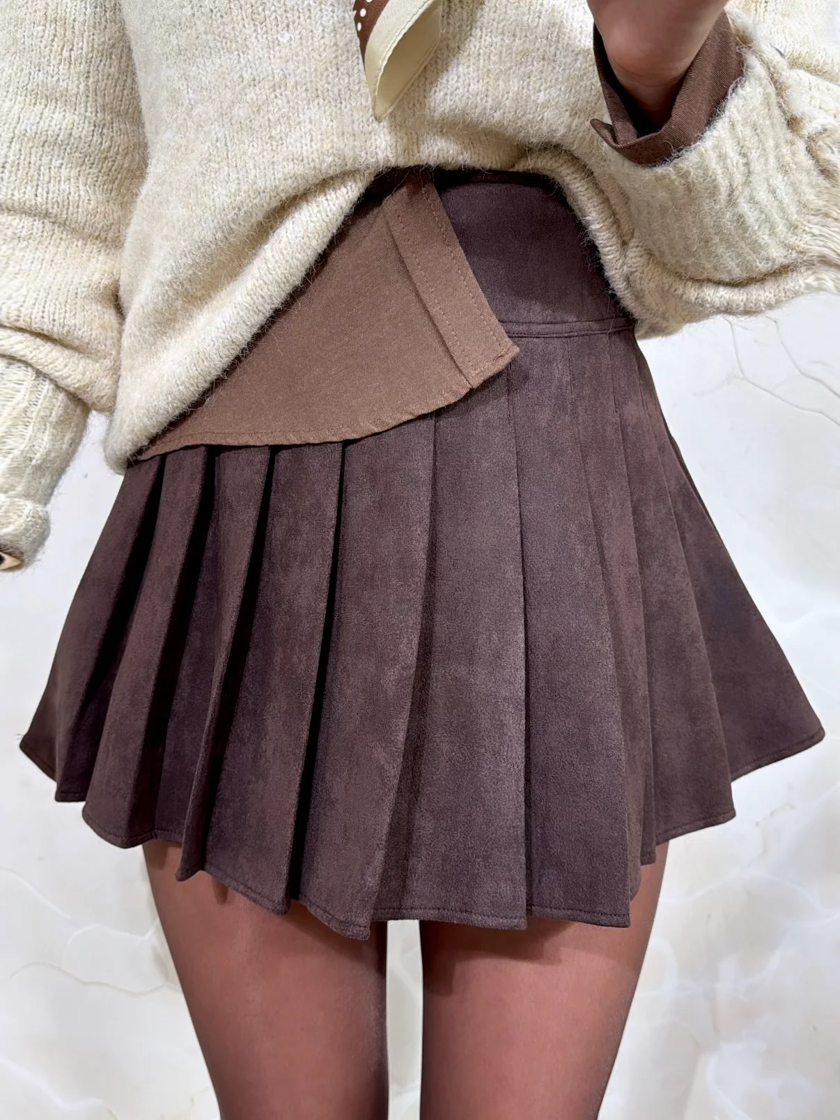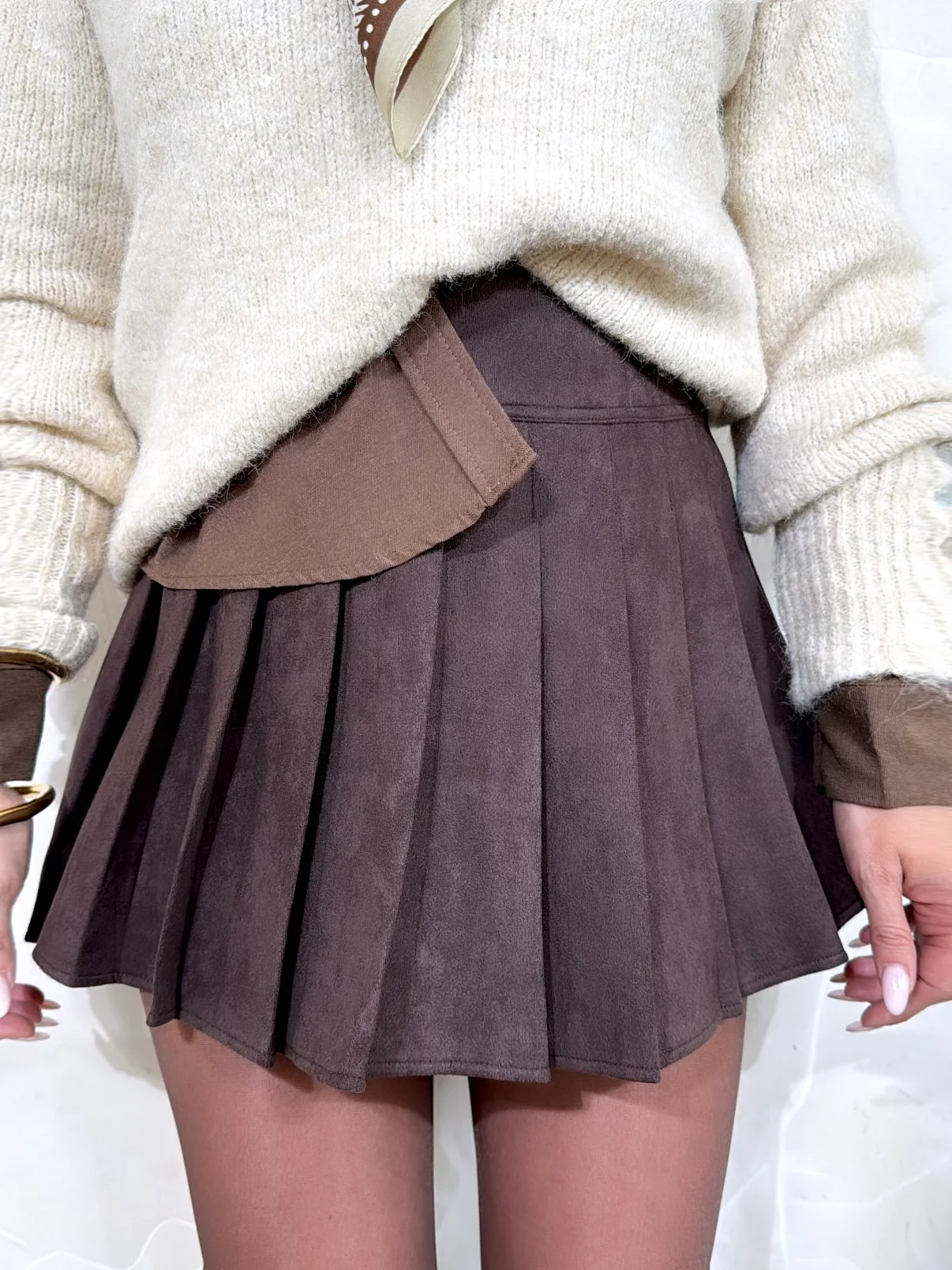 Jupe Choco • Aspect daim • Pauline mesure 1M65 et porte une taille S-M • Composition : 100% Viscose • Mode d’expédition : Colissimo avec ou sans signature. • Livraison offerte à partir de 69€ d’achat