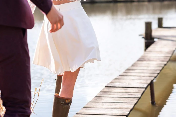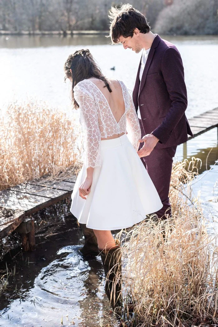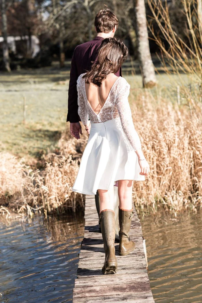Jupe de mariage civil courte. Forme cercle, évasée pour qu’elle tournoie avec vous toute la nuit.