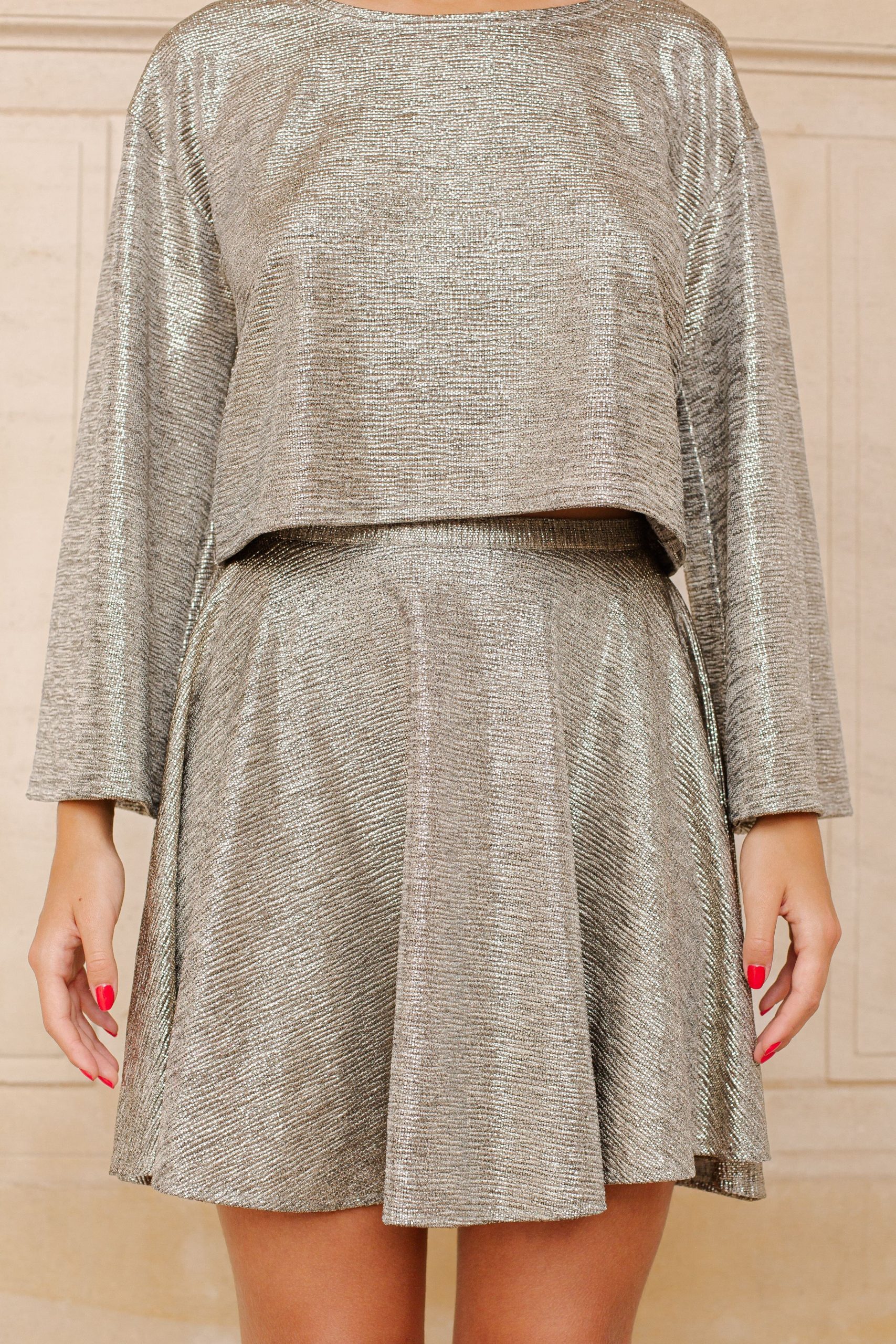 Mettez en lumière votre élégance avec notre jupe Splendide, une pièce qui rayonne d’une lueur métallisée captivante. Sa matière scintillante révèle des nuances dorées sublimes, ajoutant une dimension unique à votre tenue. Cette jupe aérienne capture le mouvement avec grâce, vous faisant vous sentir comme une véritable reine en constante évolution. La fermeture éclair discrète dans le dos assure un ajustement parfait tout en maintenant la simplicité du design. Que ce soit pour une soirée spéciale ou pour briller au quotidien, notre jupe Splendide vous offre la promesse d’un style lumineux et plein d’audace.