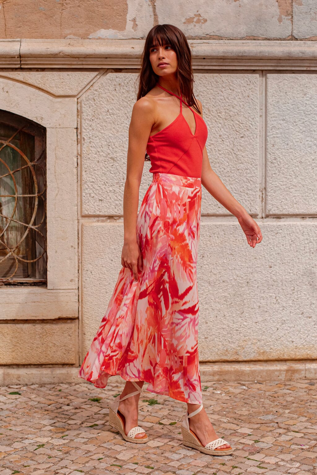 Introduisant la Jupe Stabilité : une expression de grâce et de confort dans un seul vêtement. Cette jupe longue bénéficie d’une coupe fluide qui danse avec le vent, offrant un mouvement naturel et élégant à chaque pas. Son tissu léger promet un port confortable toute la journée, tandis que la ceinture élastiquée dans le dos assure un ajustement parfait et sans effort. Le motif fleuri effet tie & die ajoute une dimension artistique et moderne, faisant de cette jupe un choix idéal pour celles qui cherchent à allier style et aisance dans leur quotidien.