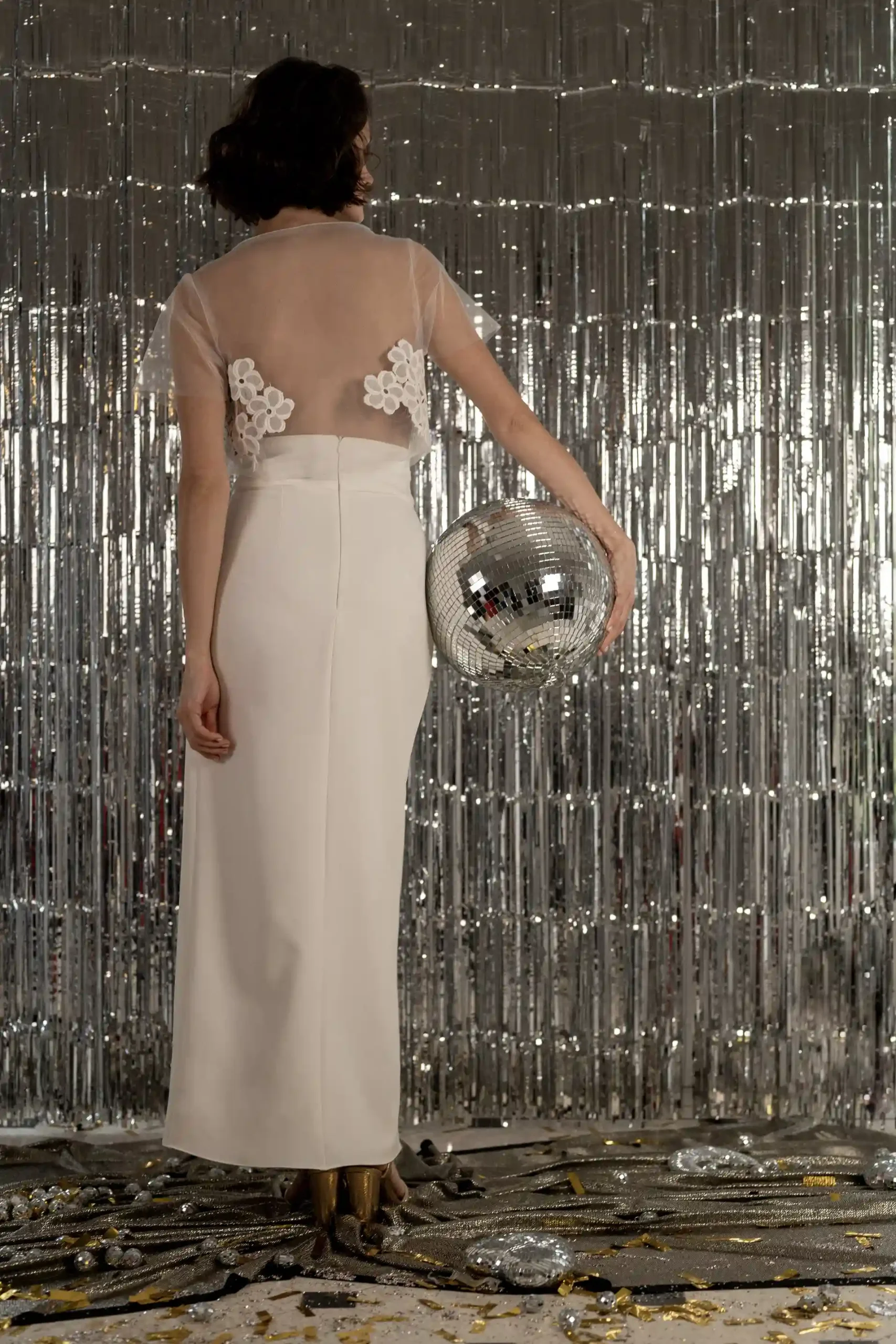 Top en tulle et organza : une transparence délicate pour une allure romantique et chic.