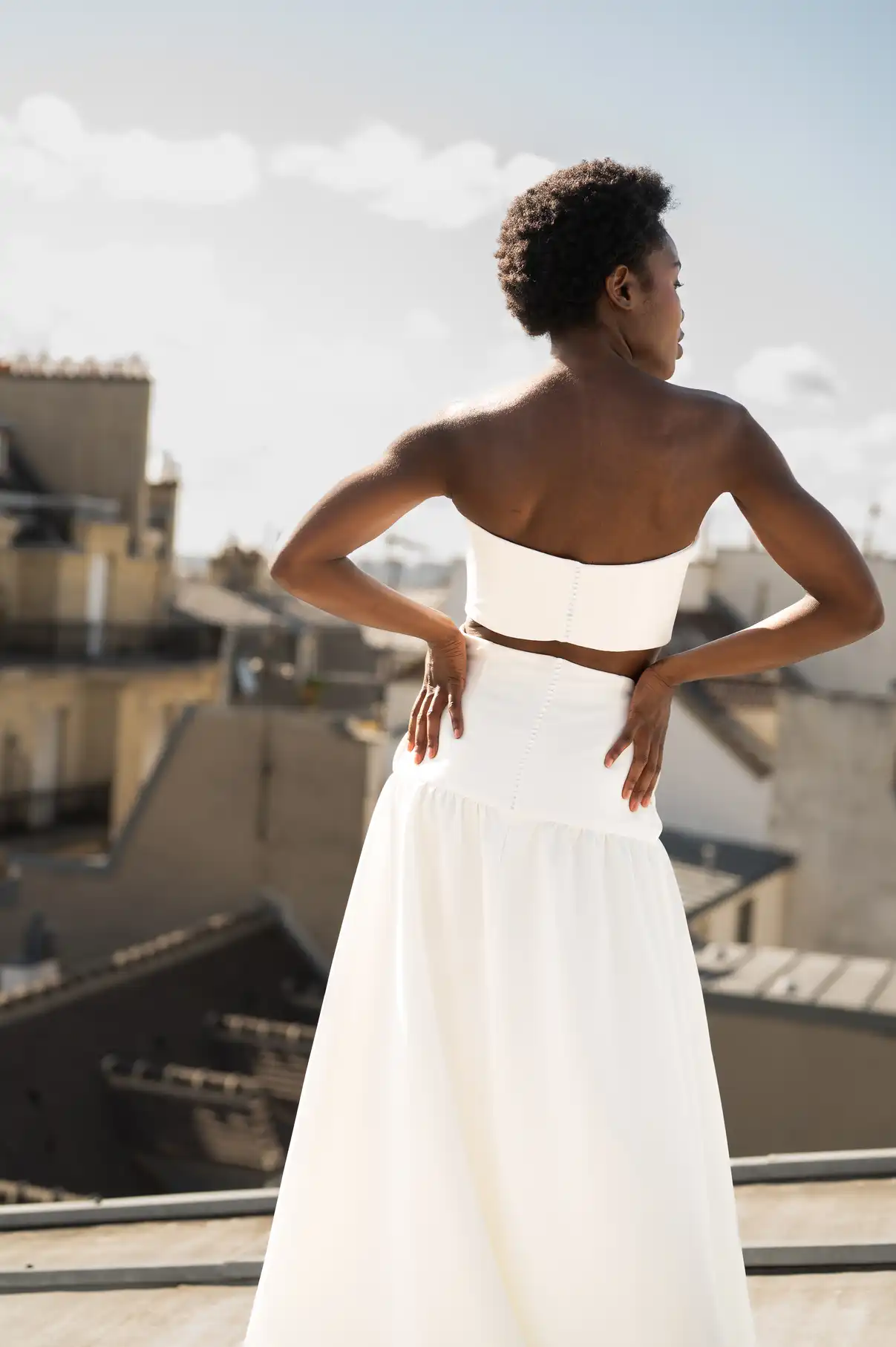 Ce top bustier de mariée séduit par sa ligne nette et contemporaine.