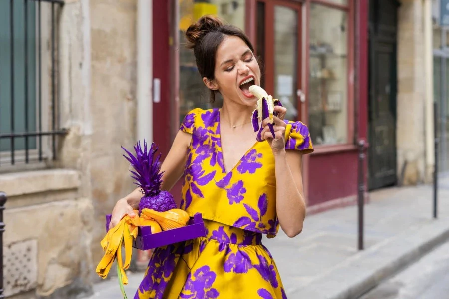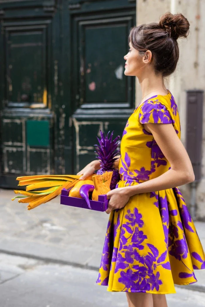 Ensemble en imprimé avec sa jolie jupe à volume et son top au décolleté inversé dans le dos avec ses petits mancherons.