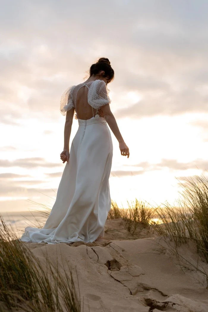 Fabriqué en France Prêt à porter : dès 1100€Sur-mesure : dès 1700€ Description Robe longue avec son superbe top en jacquard à décolleté plongeant et ses manches ballon en plumetis sans oublier ce dos subtilement découvert. Tissu : – Crêpe de soie (100% soie) Doublure soie – Crêpe de polyester (100% polyester) Doublure polyester – […]