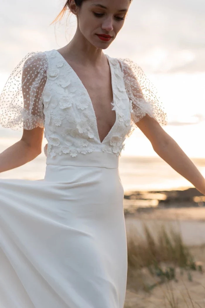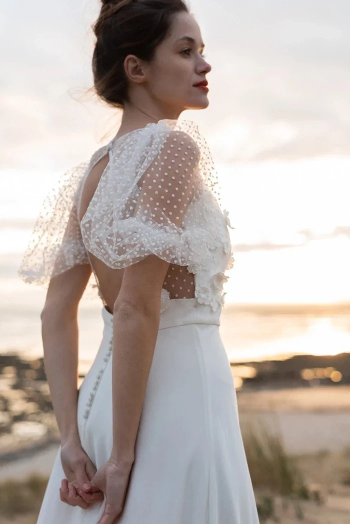 | Matière | Polyester/Tulle plumetis et Dentelle, Soie/Tulle Plumetis et Dentelle |