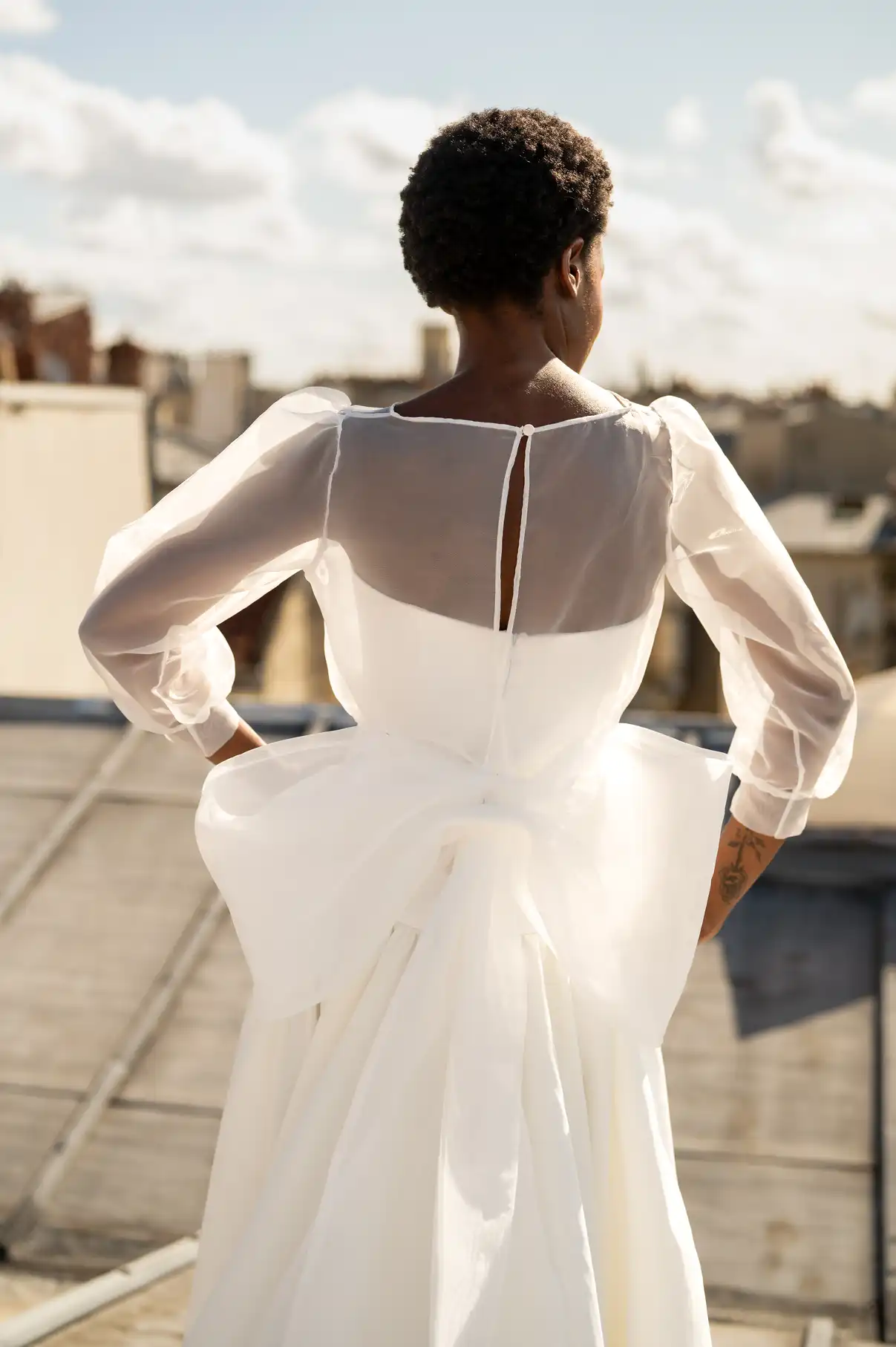 La pièce maîtresse ? Le nœud oversize dans le dos, véritable signature visuelle, qui insuffle une