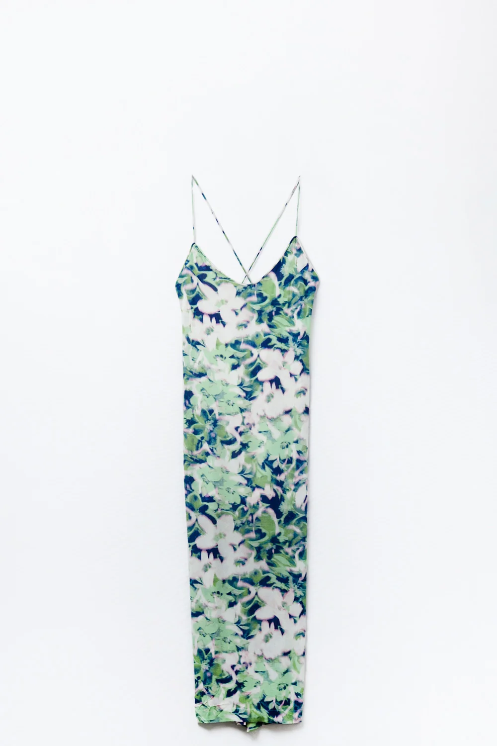 longue robe verte à imprimé floral avec large décolleté dans le dos