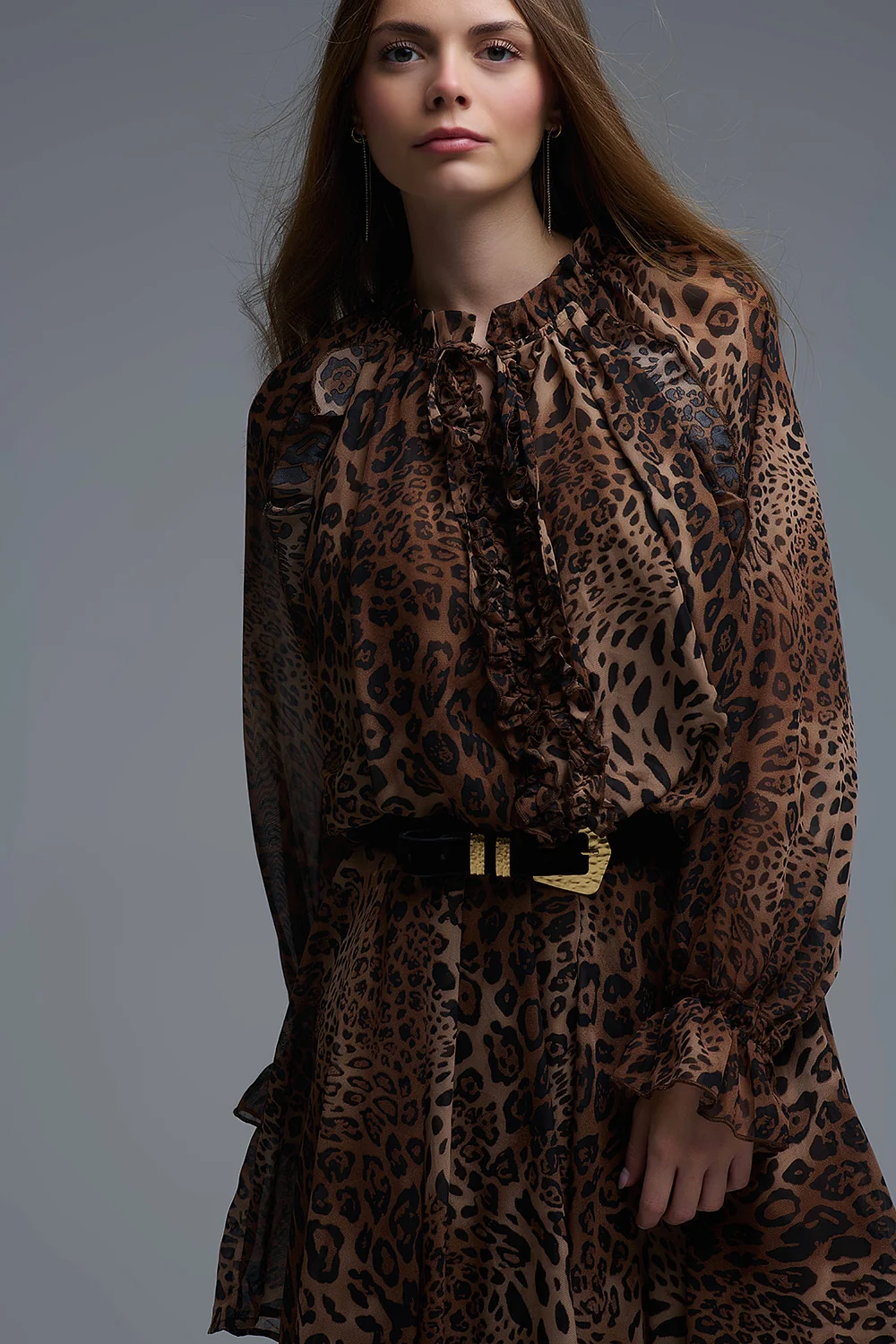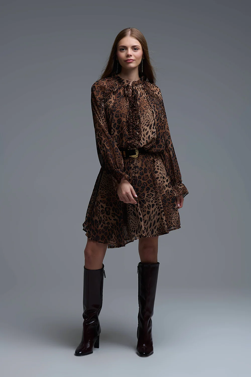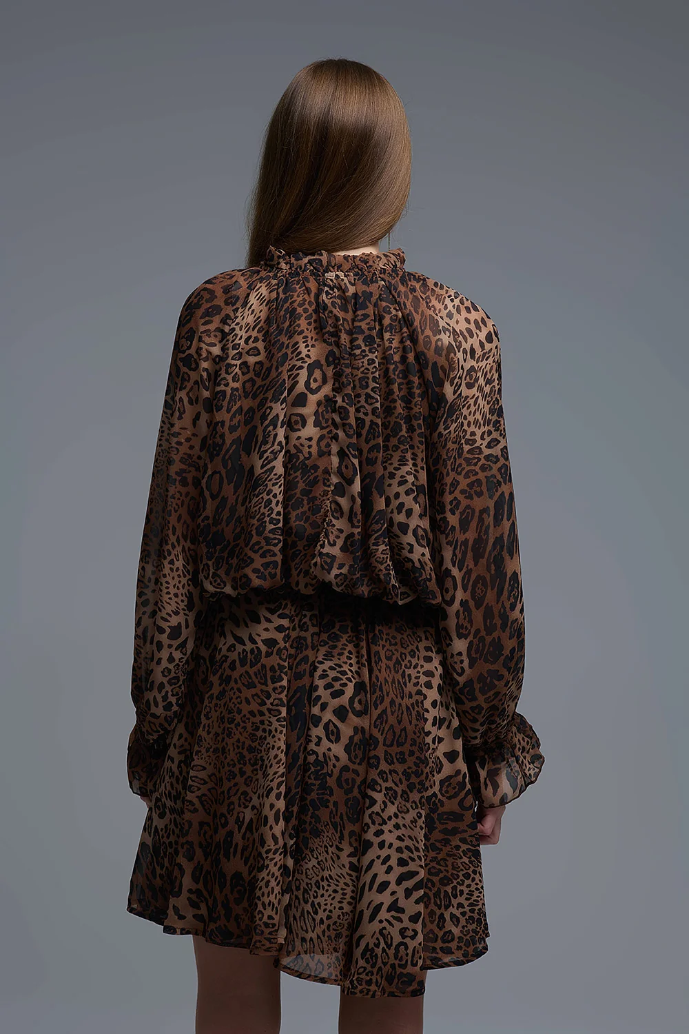 Mini robe en mousseline imprimée léopard avec volants