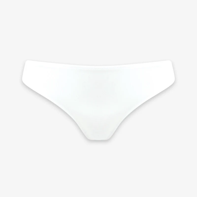 Coupe / Devant / Dos : Nouvelle forme pour ce string avec des côtés plus larges. Tout en microfibre, cuisses et taille avec un élastique fin rabattu au zig zag.