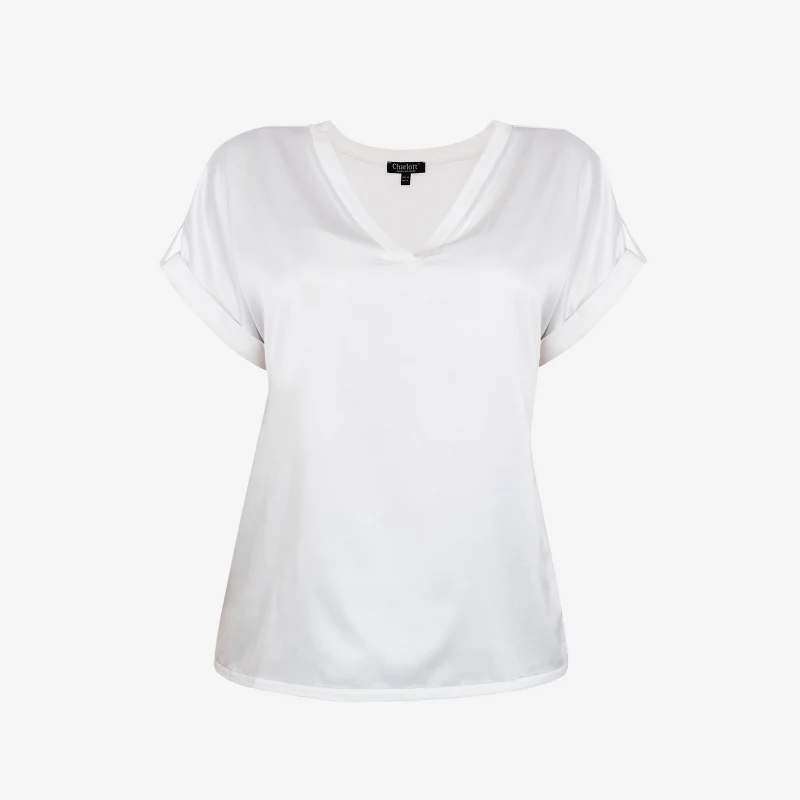 Top manches courtes bi-matière en satin et maille fine très douce