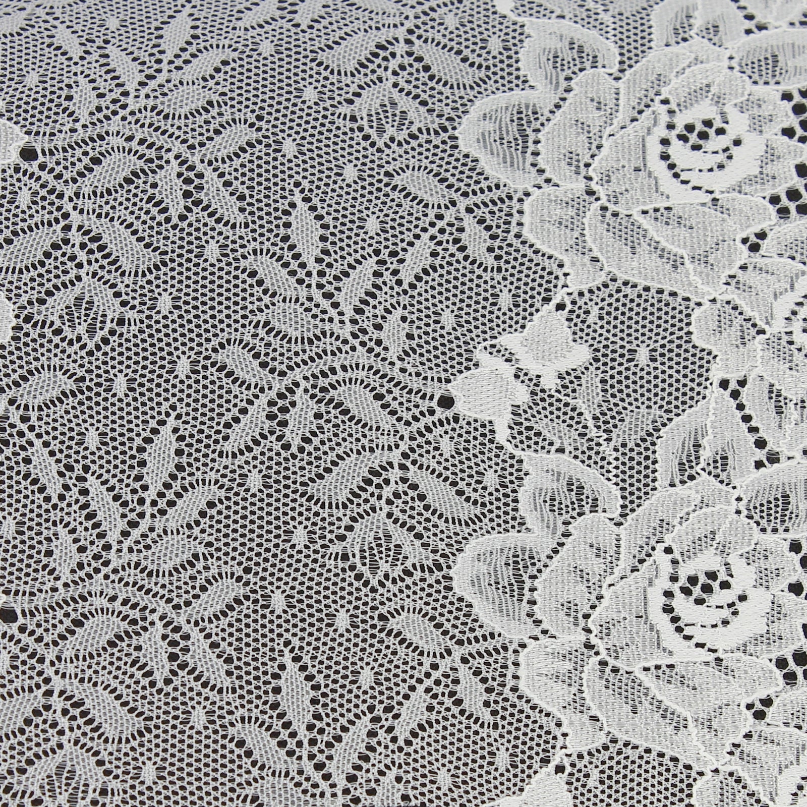 Une dentelle stretch légèrement satinée, fine et aérienne, enrichie de détails, au motif floral et aux écailles travaillées pour sublimer le ciselé qui se dessine sur la peau.
