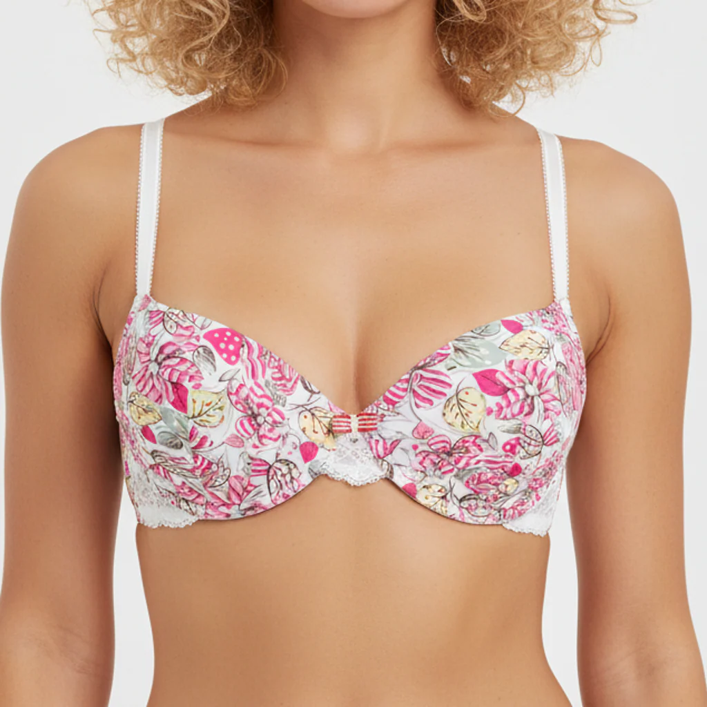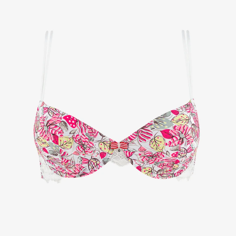 Cette ligne célèbre la beauté éclatante de la nature à travers un imprimé floral et végétal sur une microfibre ultra-douce aux tonalités rose, rehaussées par du vert et du jaune. Elle est associée à une dentelle brillante aux fils reliefés qui nous transporte dans une légère insouciance !