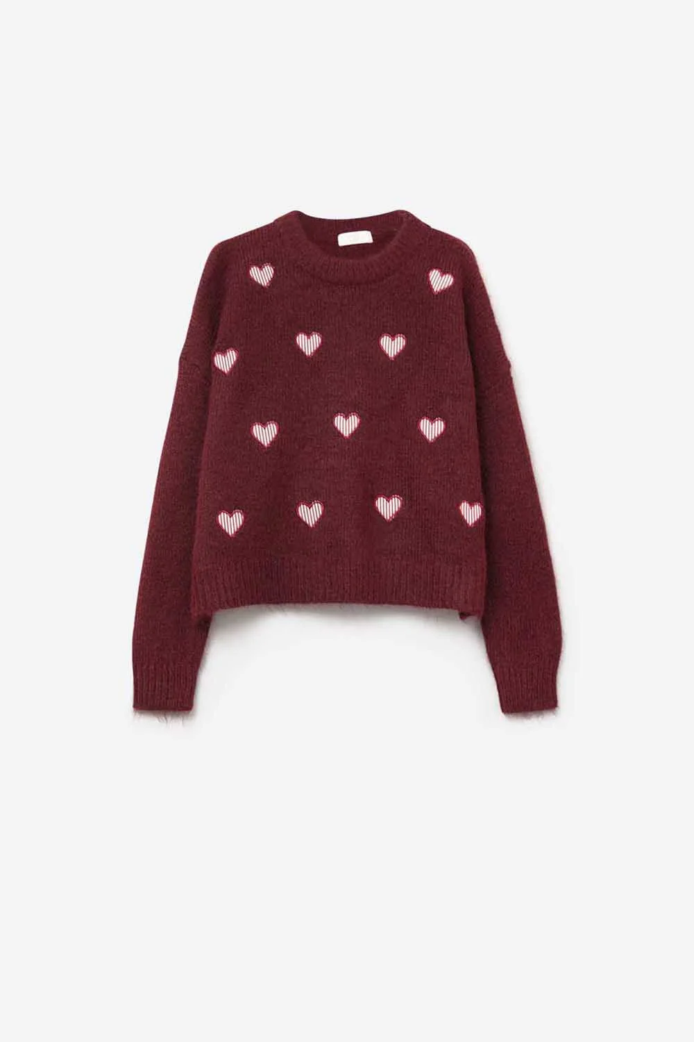 Pull à col ras du cou et cœurs rayés
