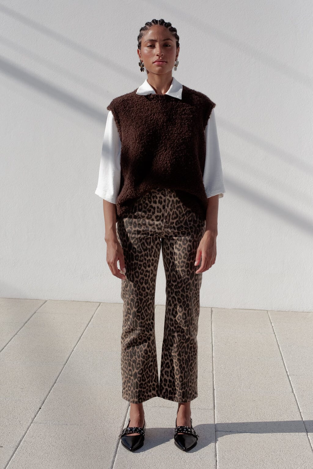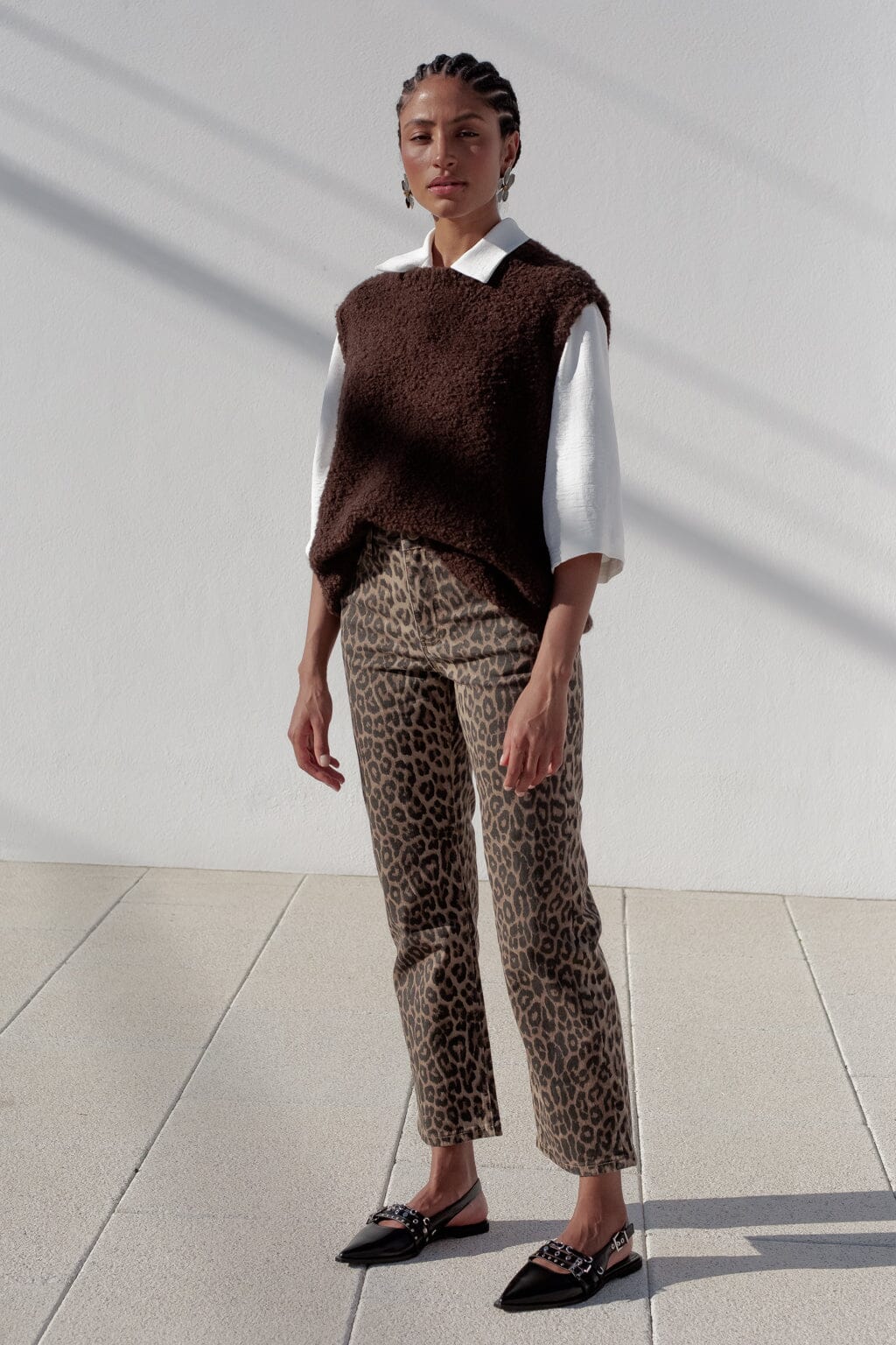 Cardigan à manches longues imprimé léopard avec nœuds