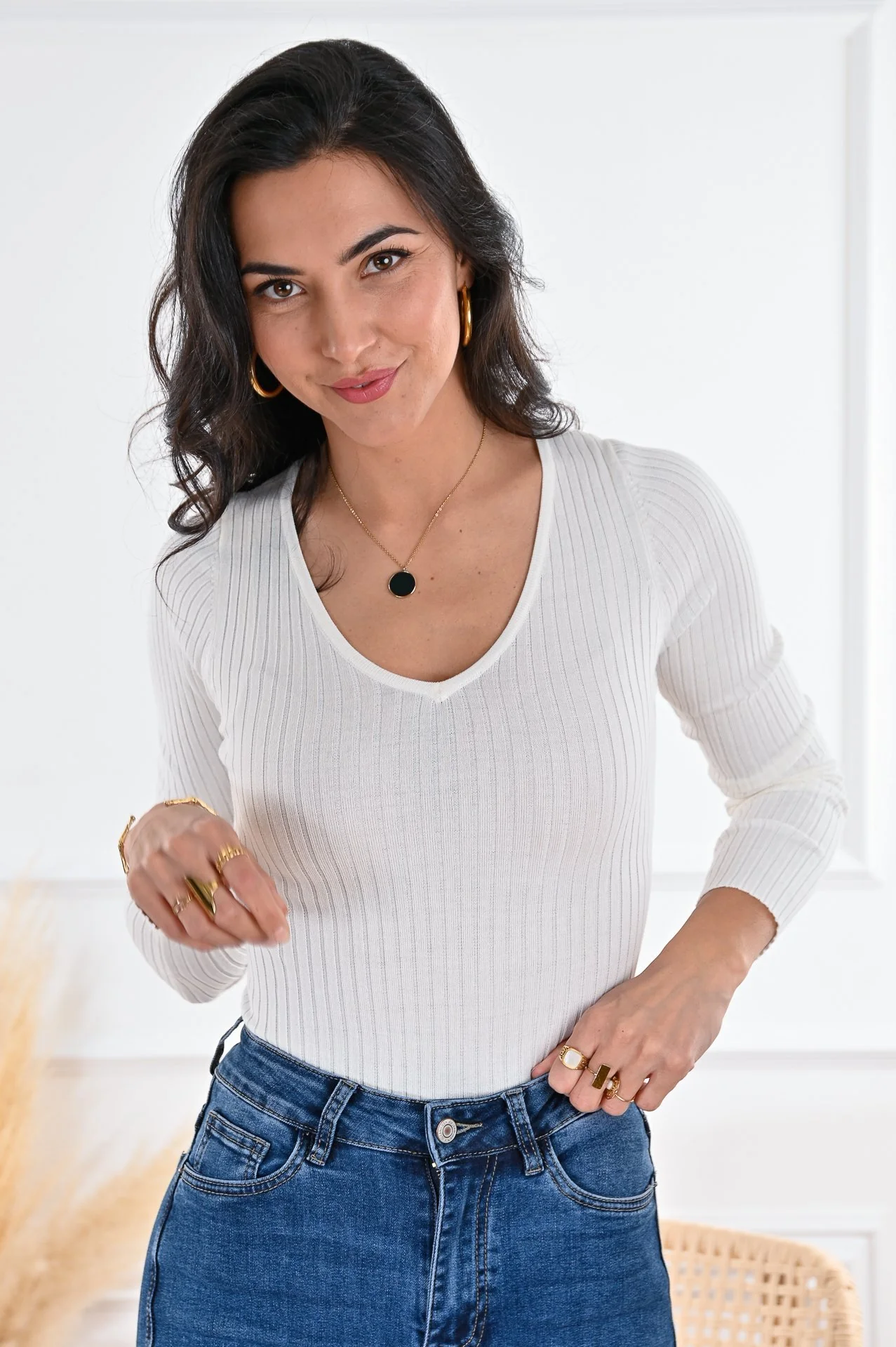 Ce pull côtelé est la base des bases ! Ce joli pull en V est parfait pour la saison. Ce modèle près du corps vous dessine une allure glamour et tendance. Porté avec un jean slim et une paire de talons, vous aurez un look hyper tendance !