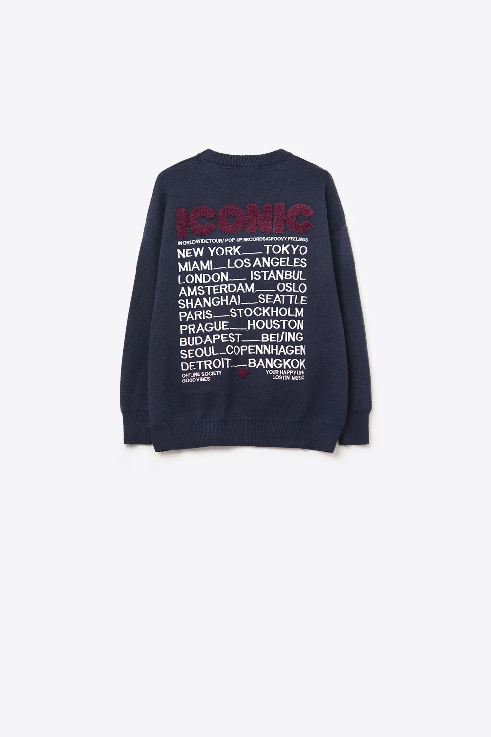 Pull ICONIC brodé avec imprimé Global Tour dans le dos en bleu marine
