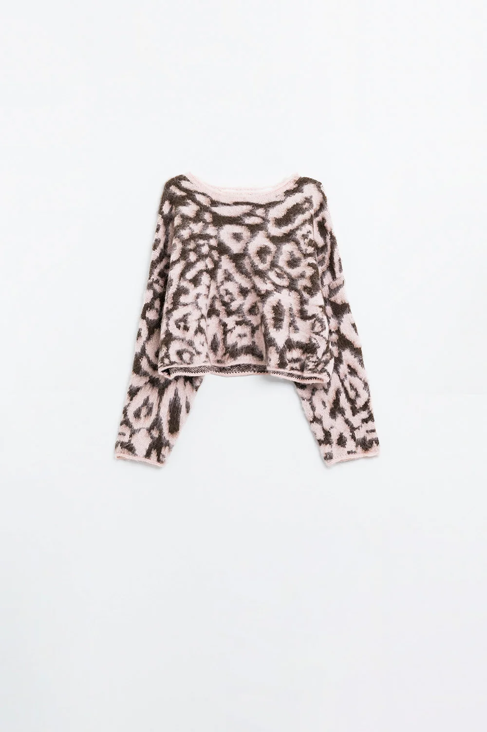 Pull imprimé léopard rose en laine tricotée