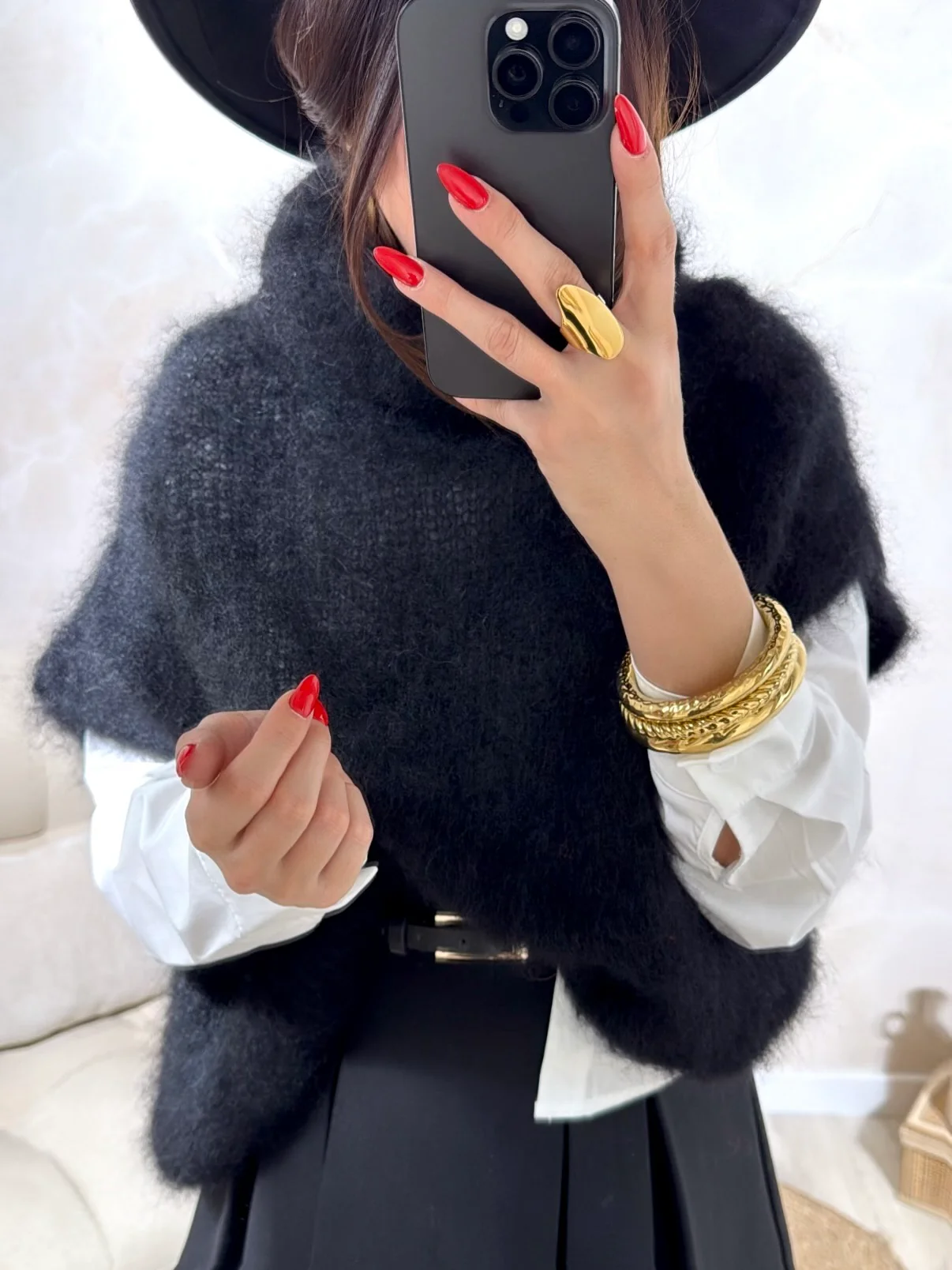 Pull Orielle • Col roulé • Sans manche • Pauline mesure 1M65 et porte une Taille unique • Composition 80% Mohair, 18% Polyamide, 2% Elasthanne • Mode d’expédition: La poste, colissimo avec ou sans signature . • Frais de port offerts à partir de 69 € d’achat