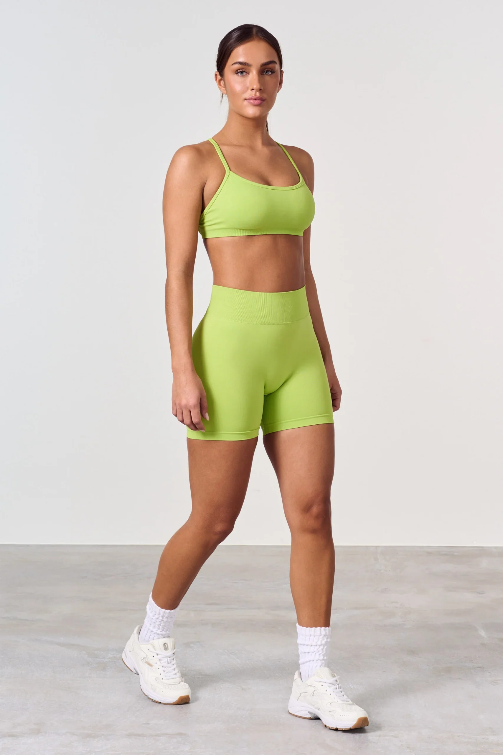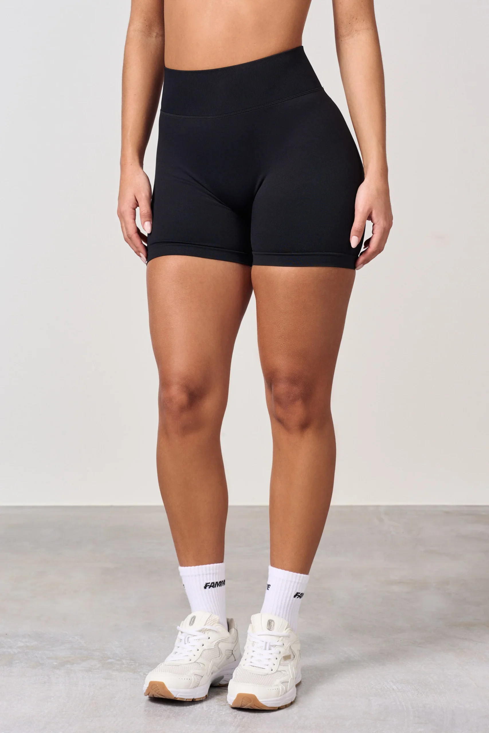 Short de sport taille haute avec effet scrunch. Le nouveau scrunch offre aux fesses une forme naturellement belle, une peau lisse et sans plis. Le short scrunch procure l’effet désiré sur toutes les fesses, tout en restant presque invisible. Le short ne possède pas de couture avant et reste bien en place autour de la taille. Le short est coupé légèrement plus court à la taille que les leggings.