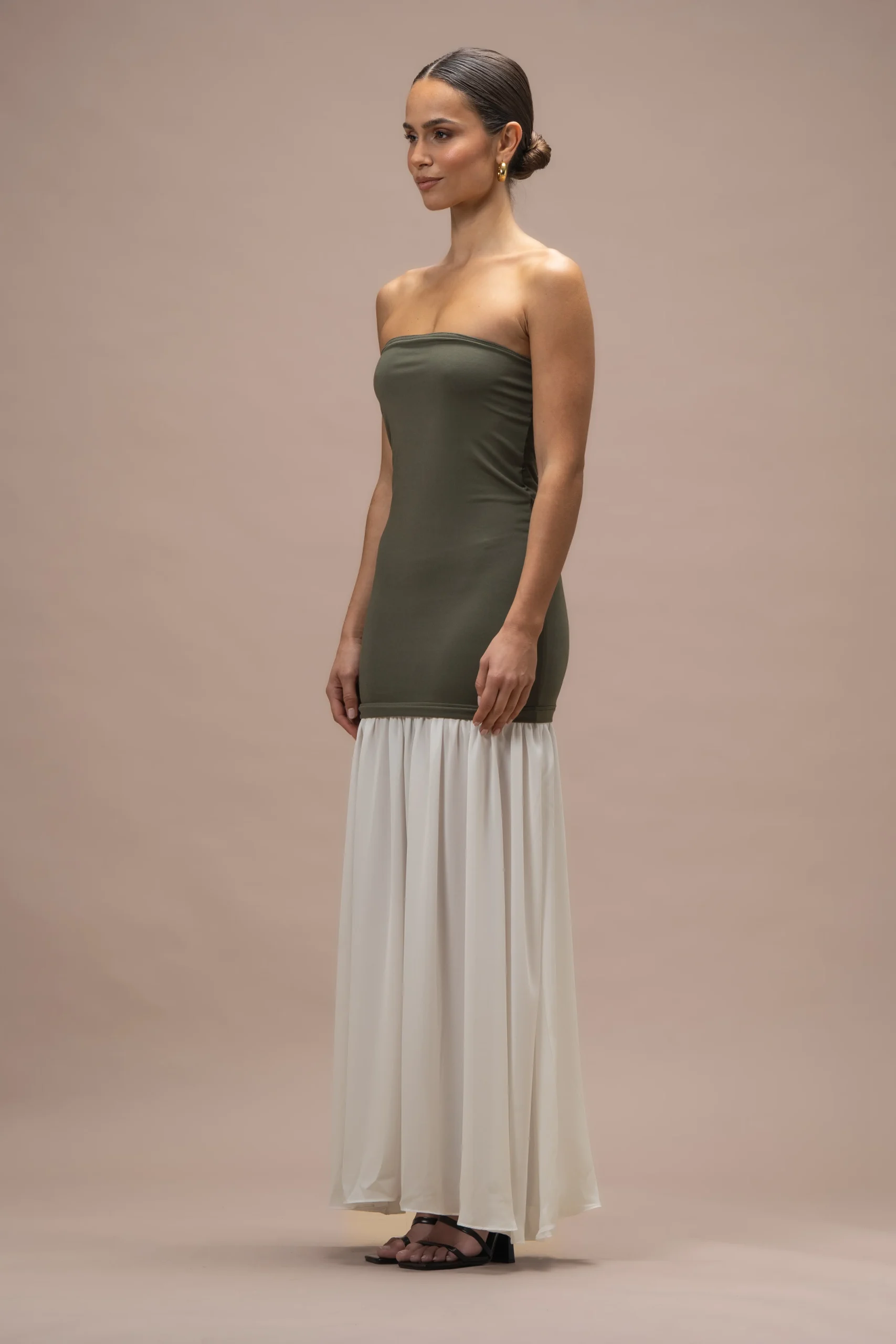Robe Angie bi-matières kaki