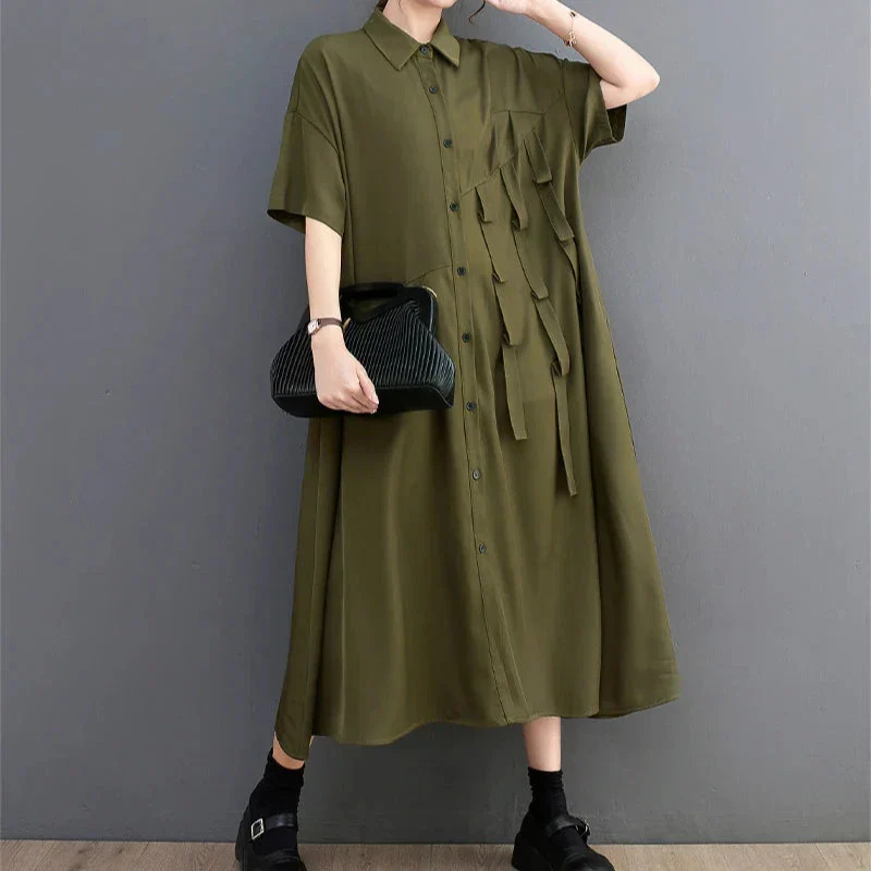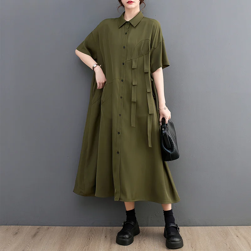 Plonge dans le confort absolu et le style décontracté chic avec notre robe chemise ample. Sa coupe généreuse et ses manches courtes offrent une liberté de mouvement optimale, tandis que son tissu en coton doux garantit un confort parfait toute la journée. Disponible en vert et noir, cette robe mi-longue est parfaite pour un look boho ou urbain, avec une taille unique qui s’adapte à toutes les silhouettes avec élégance. Ajoute une touche de diversité à ta garde-robe avec cette pièce incontournable ! 🌿