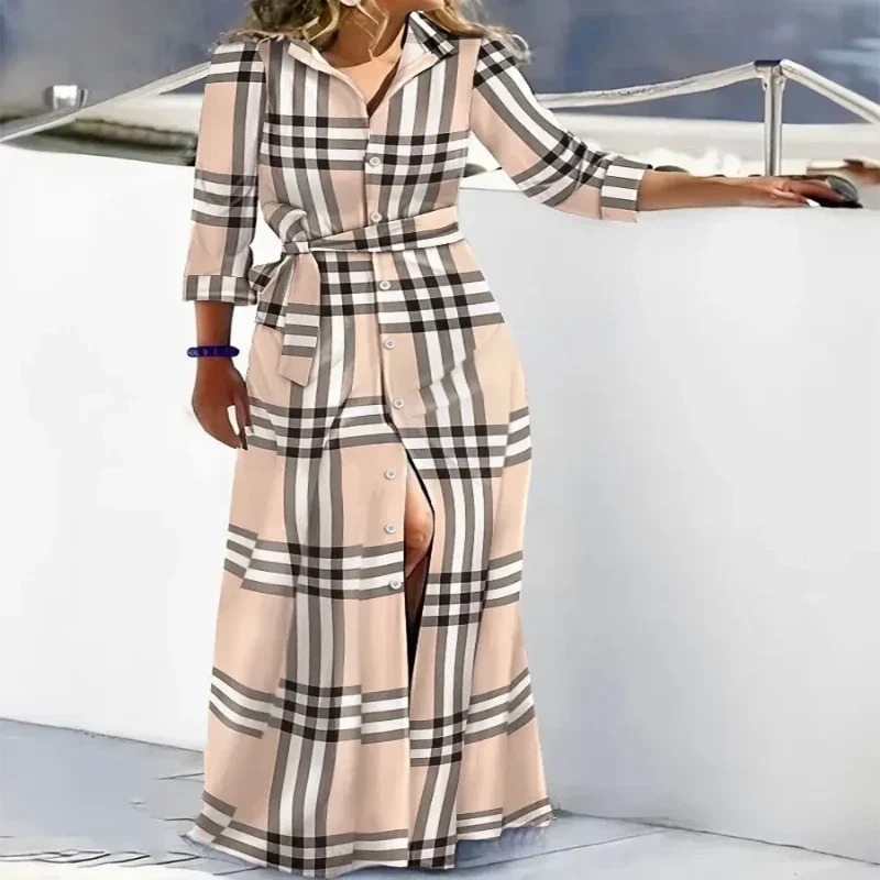 Vous recevrez une magnifique Robe Chemise Beige Longue, parfaite pour toutes les occasions, du bureau aux sorties décontractées. Son design polyvalent et son confort exceptionnel en font un incontournable de votre garde-robe.
