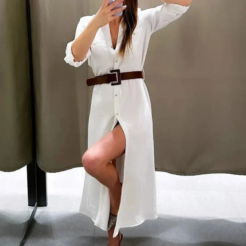 Avec sa silhouette structurée et son style épuré, la Robe Chemise Blanche avec Ceinture est une pièce versatile qui traverse les saisons et les tendances. 😍