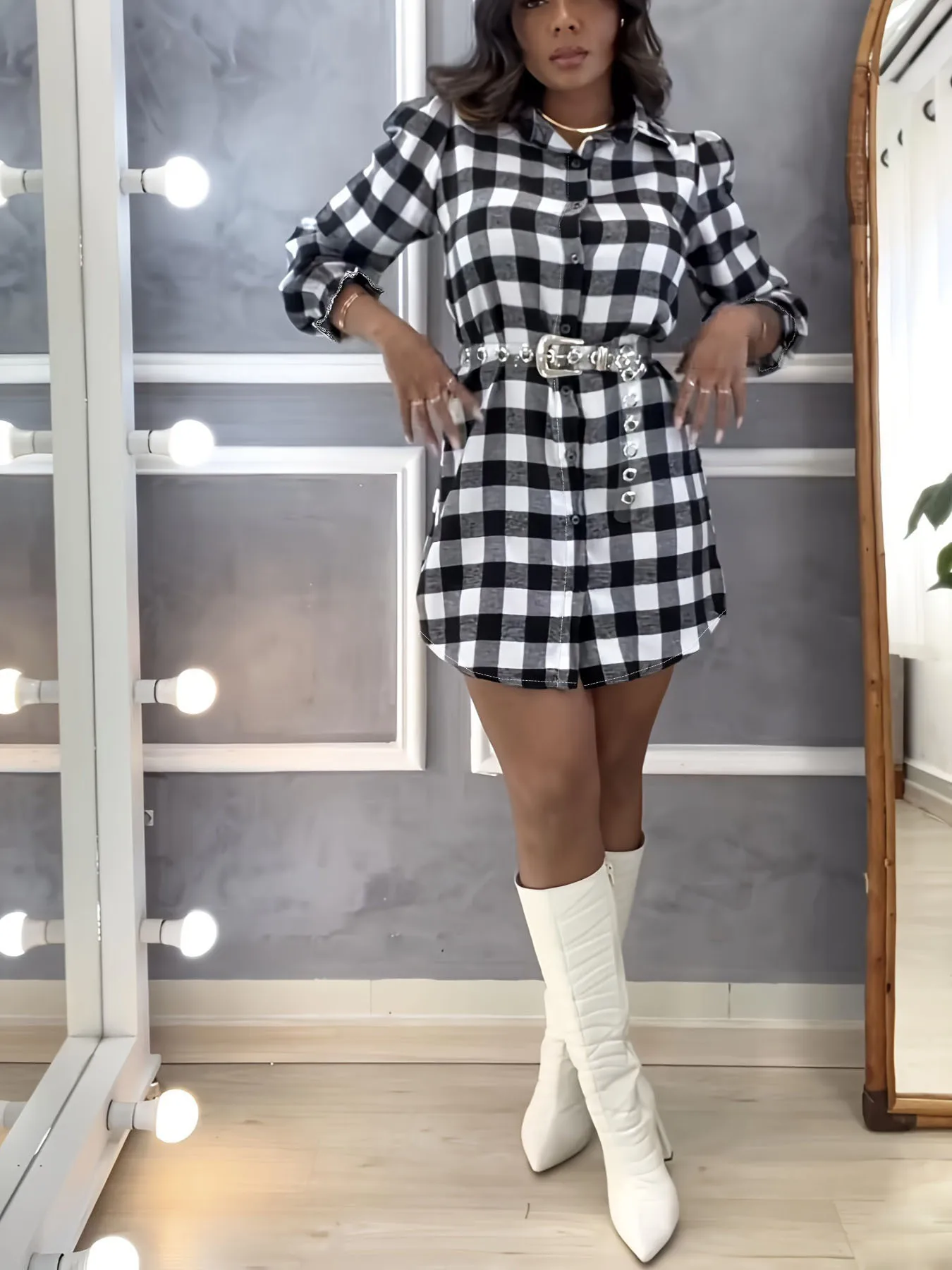 A la croisée du style décontracté et de l’élégance urbaine, la Robe Chemise Carreaux est un incontournable intemporel. Sa coupe droite et ses manches longues offrent une silhouette affinée parfaite pour toutes les occasions. L’imprimé noir et blanc apporte une touche moderne, tandis que sa longueur courte met en valeur tes jambes. Confortable et facile à porter, cette robe en polyester résistant s’adapte à ton quotidien comme à tes sorties.