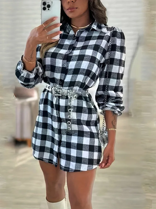 Cette robe chemise est disponible en plusieurs tailles pour s’adapter à toutes les morphologies. Les manches longues et le col chemise ajoutent une touche sophistiquée, tandis que le tissu en polyester assure un confort optimal. Son imprimé carreaux noir et blanc en fait une pièce tendance et facile à assortir.