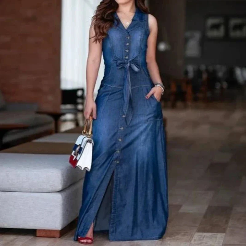 Découvre la Robe Chemise en Jean Sans Manche